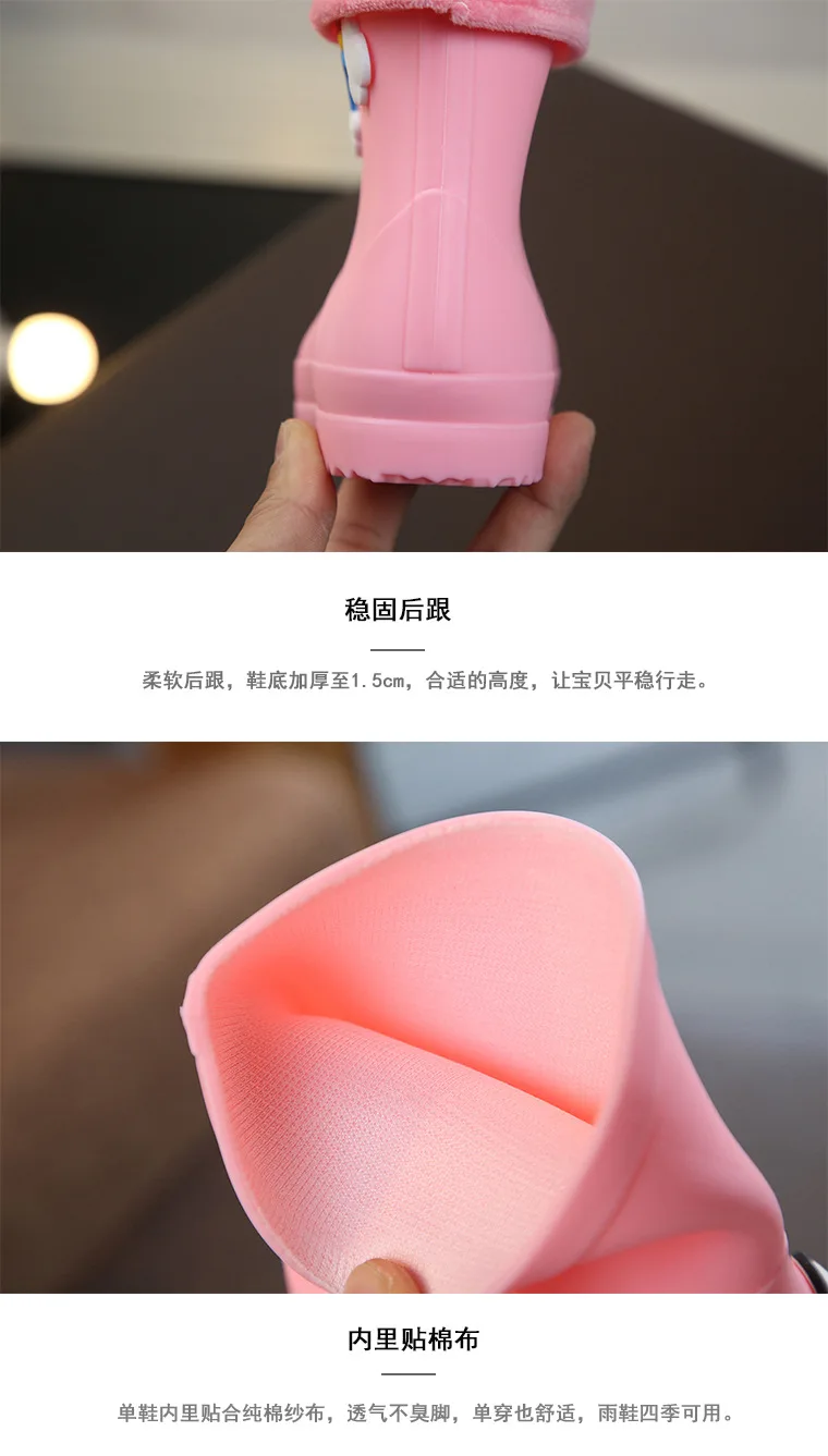 Детские резиновые сапоги для девочек, теплые непромокаемые ботинки из ПВХ, модная Съемная обувь с мультяшным единорогом для мальчиков и девочек