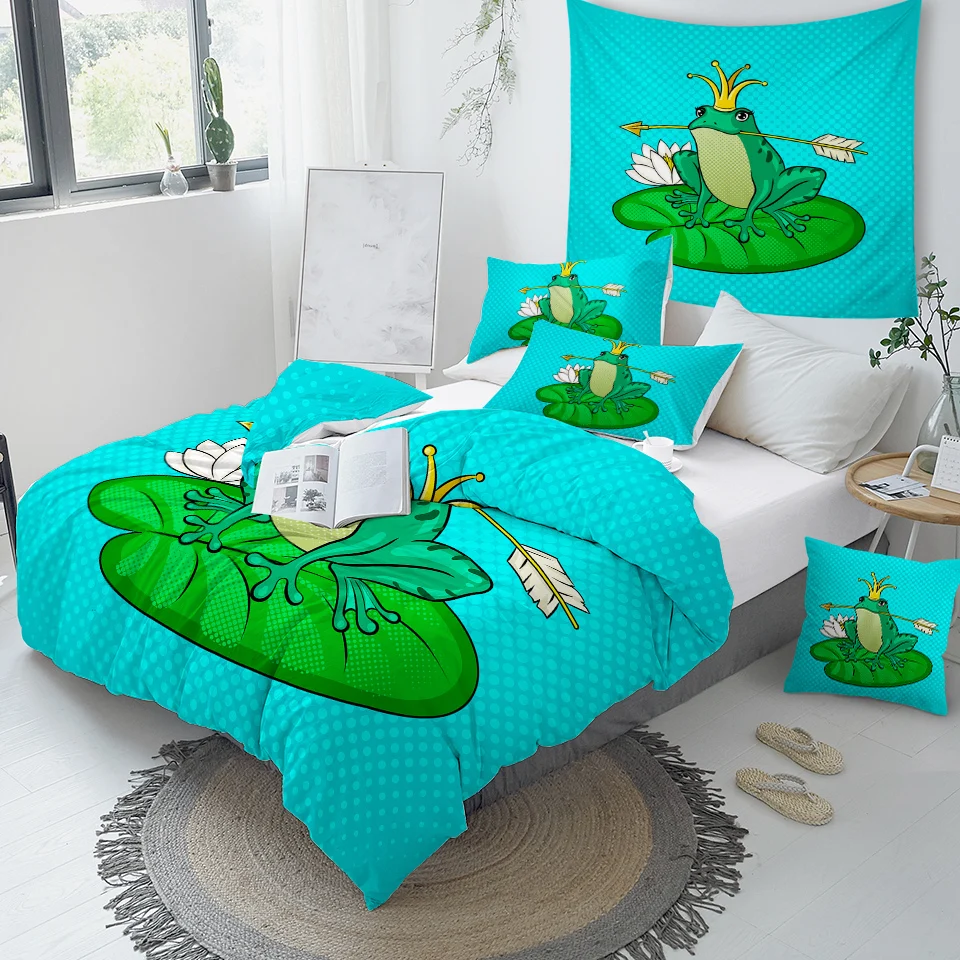 Постельное белье BeddingOutlet с лягушкой, пододеяльник с животными, милый принц-лягушка, сказочный комплект, зеленое, синее, мультяшное покрывало для детей