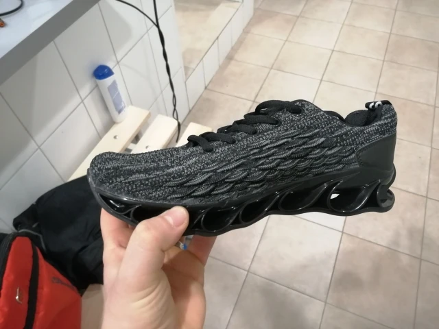 при ходьбе слышно характерное цокание,как пластик обосфальт. и непривычно работает сама подошва. Выглядят чуть на все 545р не боллее