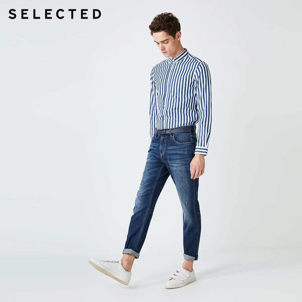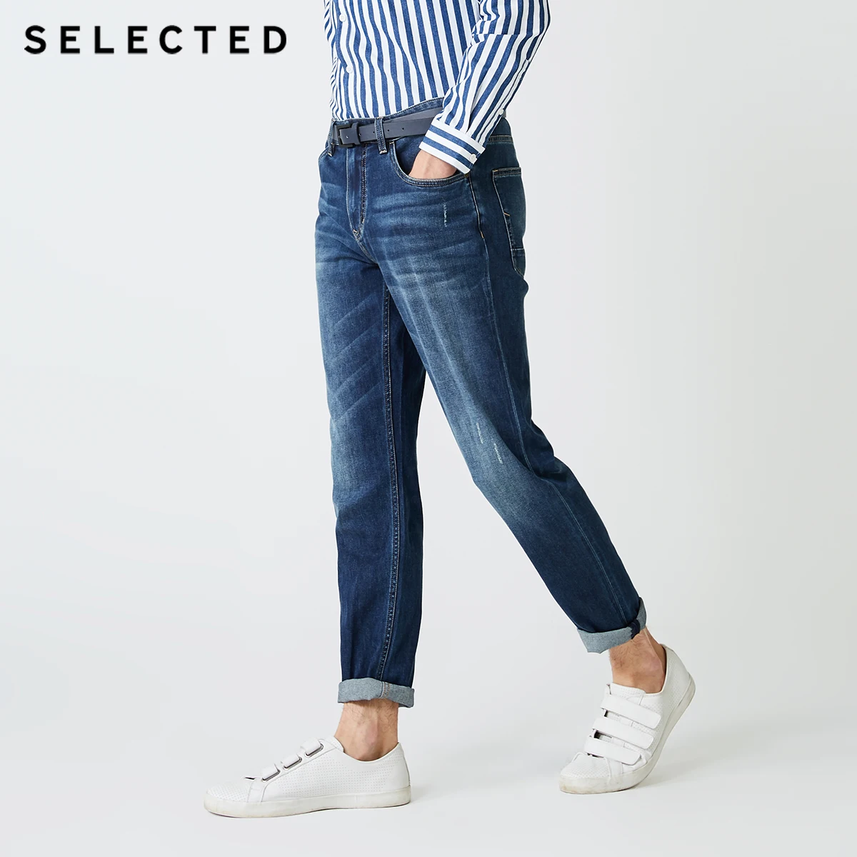 Отборные мужские прямые облегающие джинсы из хлопка C 419332520