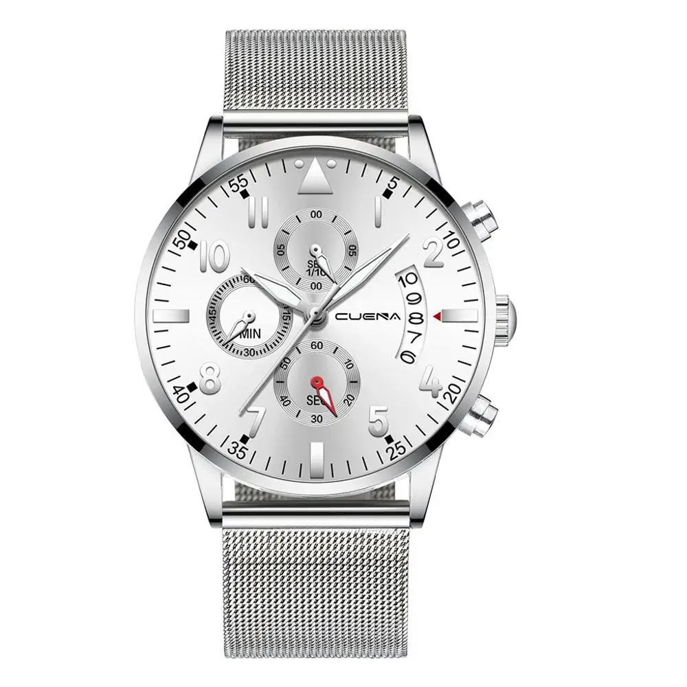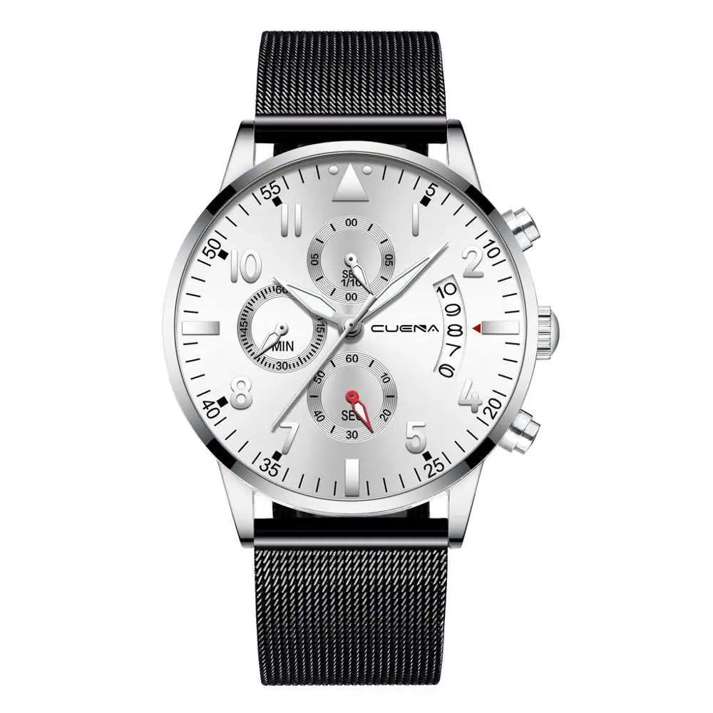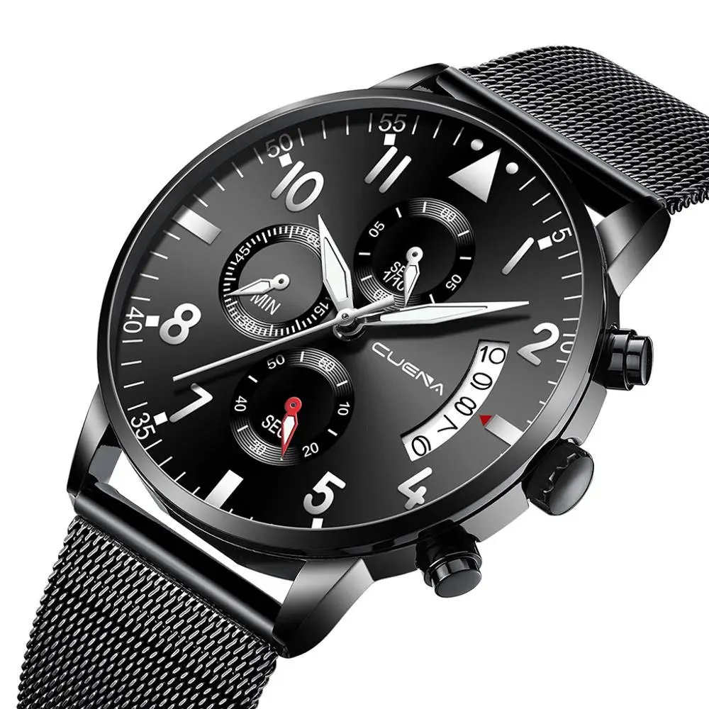 Часы наручные мужские кварцевые со стальным сетчатым браслетом, с календарем