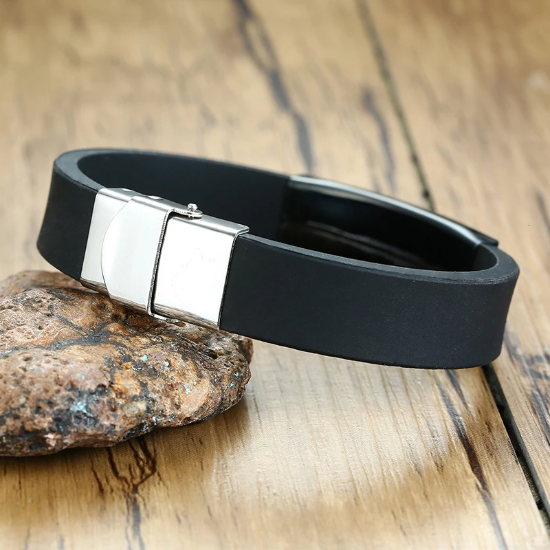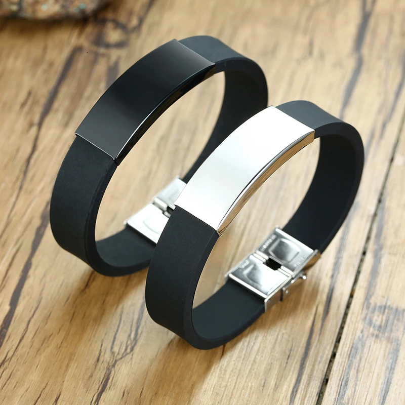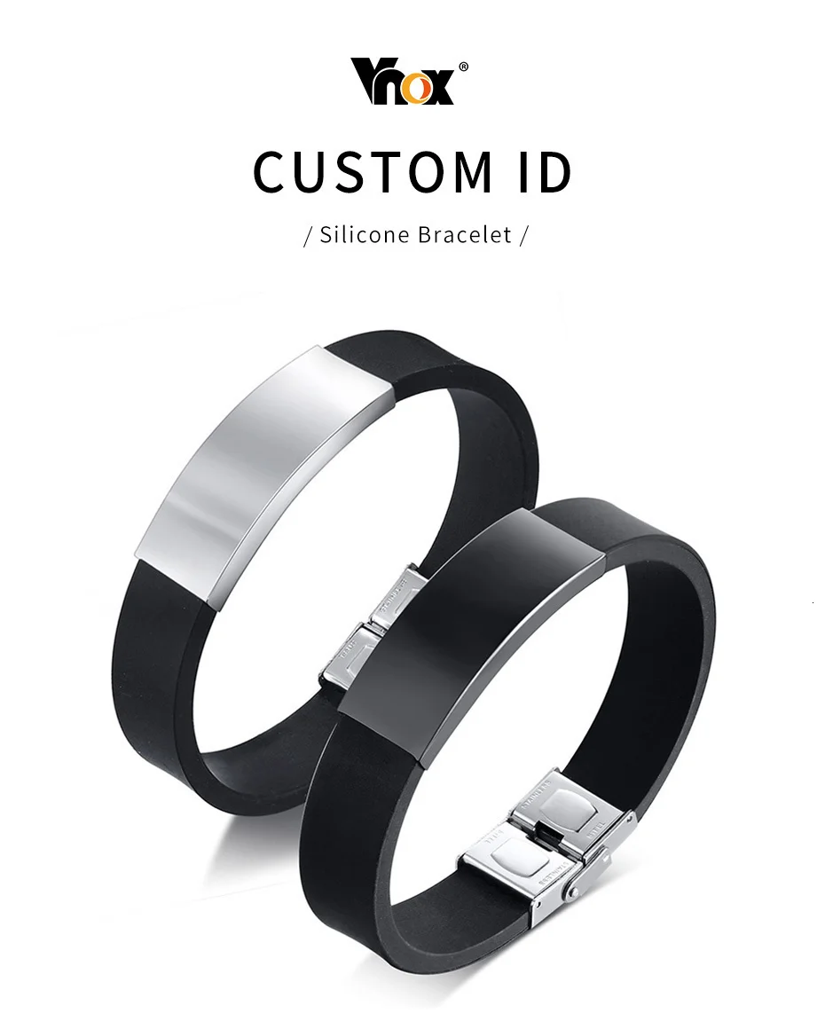 Мужские браслеты с гравировкой Vnox, удобный силиконовый ремешок с идентификационной биркой из нержавеющей стали, Подарки для него