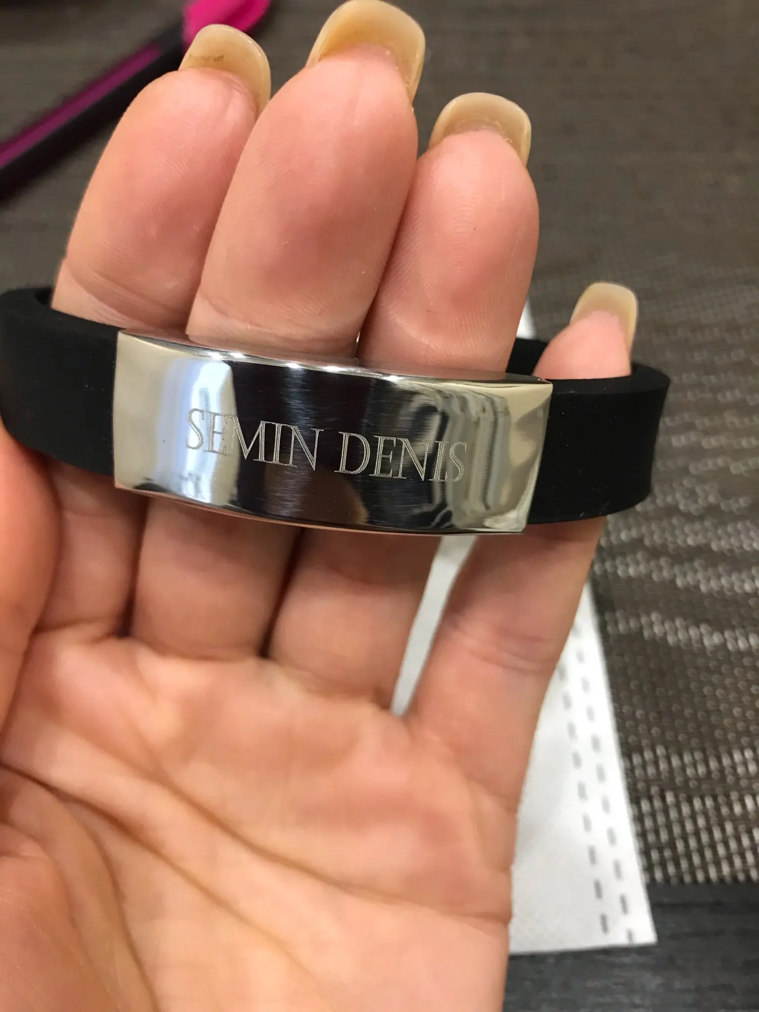 Нормальный браслет. Ремешок прорезиненный материал. Застёжка не очень удобная. Надпись не гравировка, а скорее краска. Посмотрим сколько продержится