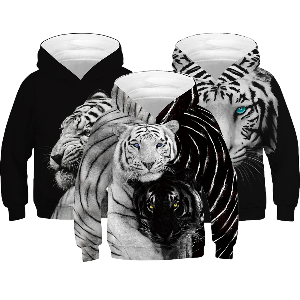 Толстовка с капюшоном для мальчиков и девочек, с 3D принтом тигра и волка, на весну, верхняя одежда для детей и подростков