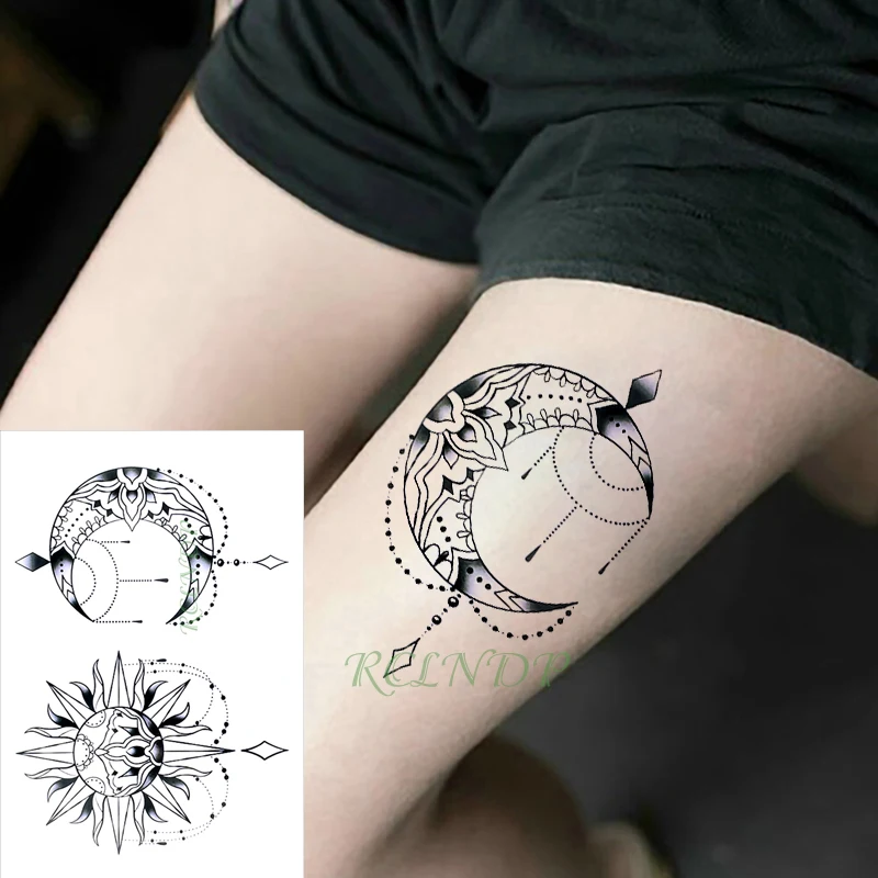 Водостойкая Временная тату-наклейка, привлекательная луна, солнце, флэш-тату, татуаж, наклейки на бедра, ногу, шею, для девушек и женщин