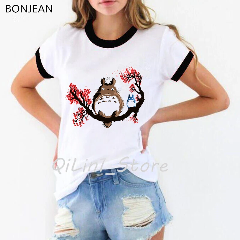 Футболка женская с японским аниме вишневые цветы, Милая футболка Тоторо в стиле Харадзюку, Смешная майка Миядзаки Хаяо, Топы s