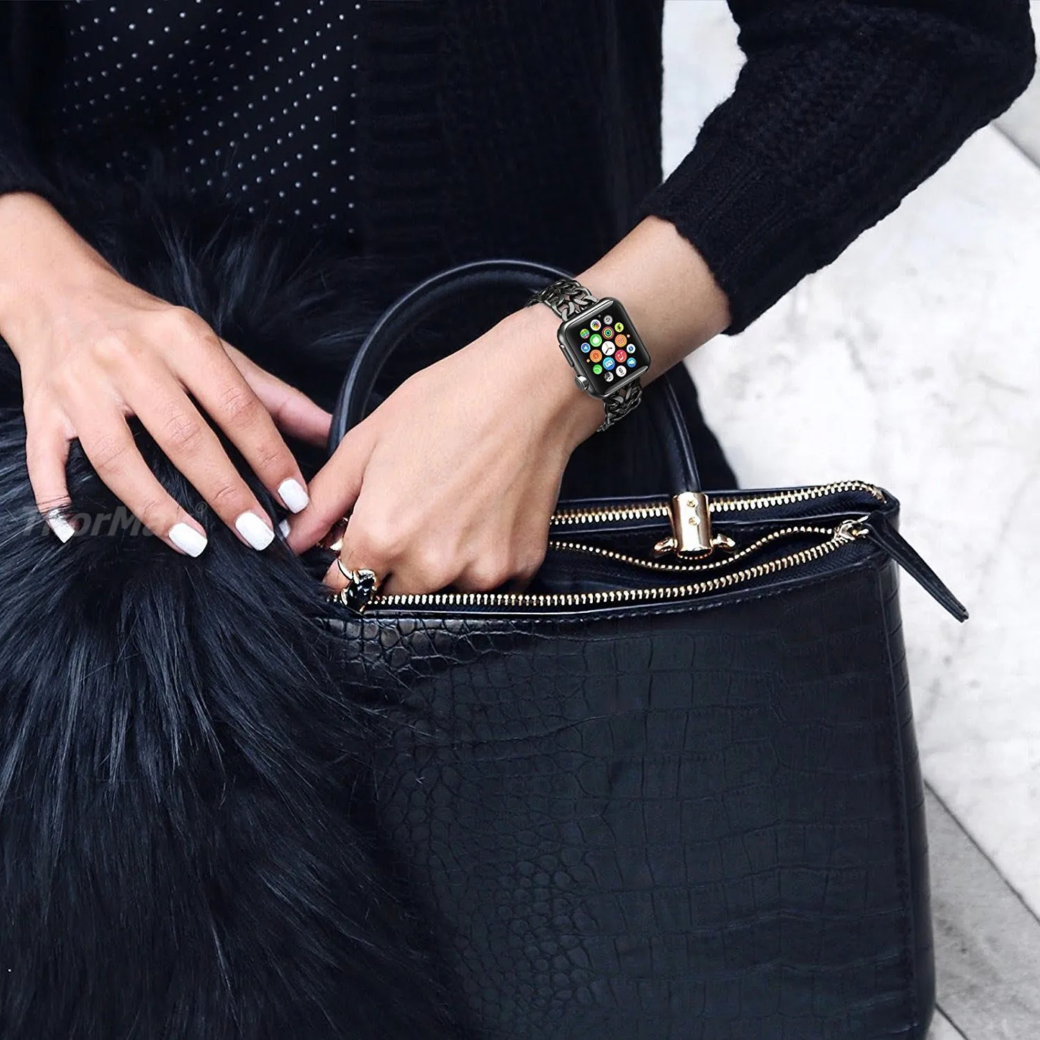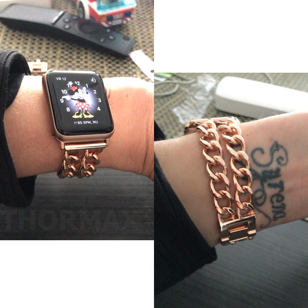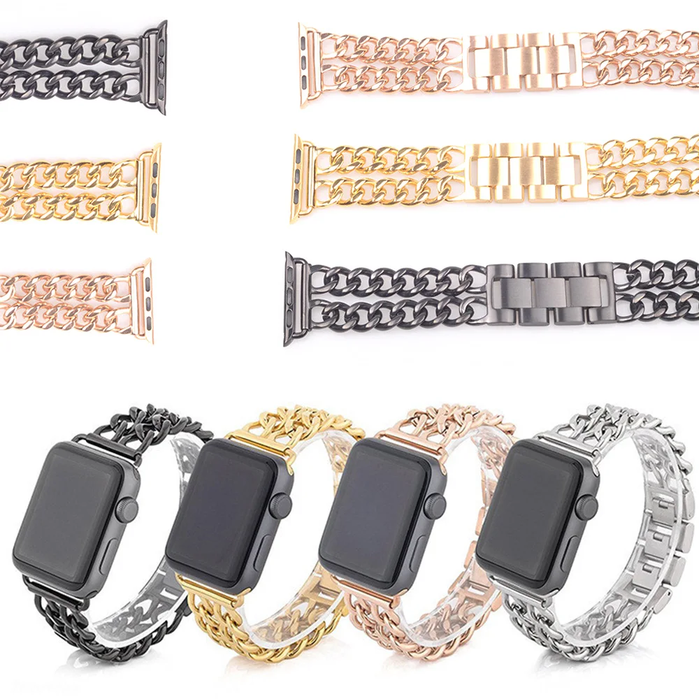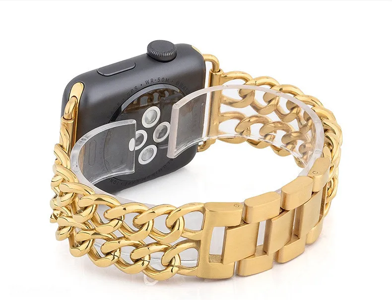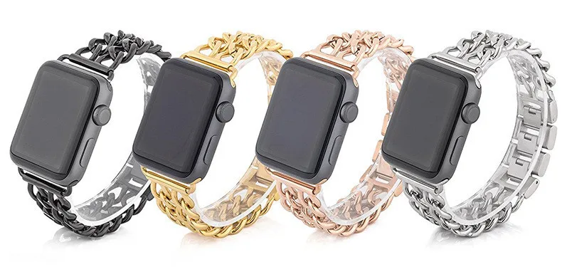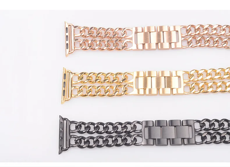 Модные ковбойские цепи ремешок из нержавеющей стали, браслет, ремешок для Apple Watch Series 4/3/2/1/38/40 мм, 42/44 мм для мобильного часо-Размер циферблата: 38 мм/40 мм, 42 мм/44 мм Длина ремешка: 160 мм ~ 203 мм подходит для запястья: 6,1 ~ 7,95 дюйма легко изменить размер: Просто снимите Раскладывающаяся застежка с вашей стороны, чтобы изменить размер ремешка. Не нужен инструмент Цвет: черный, серебряный, золотой, розовый Золотой Упаковка включает: 1 * ремешок для часов Примечание: ссылка продает только ремешок для часов, не включает apple watch