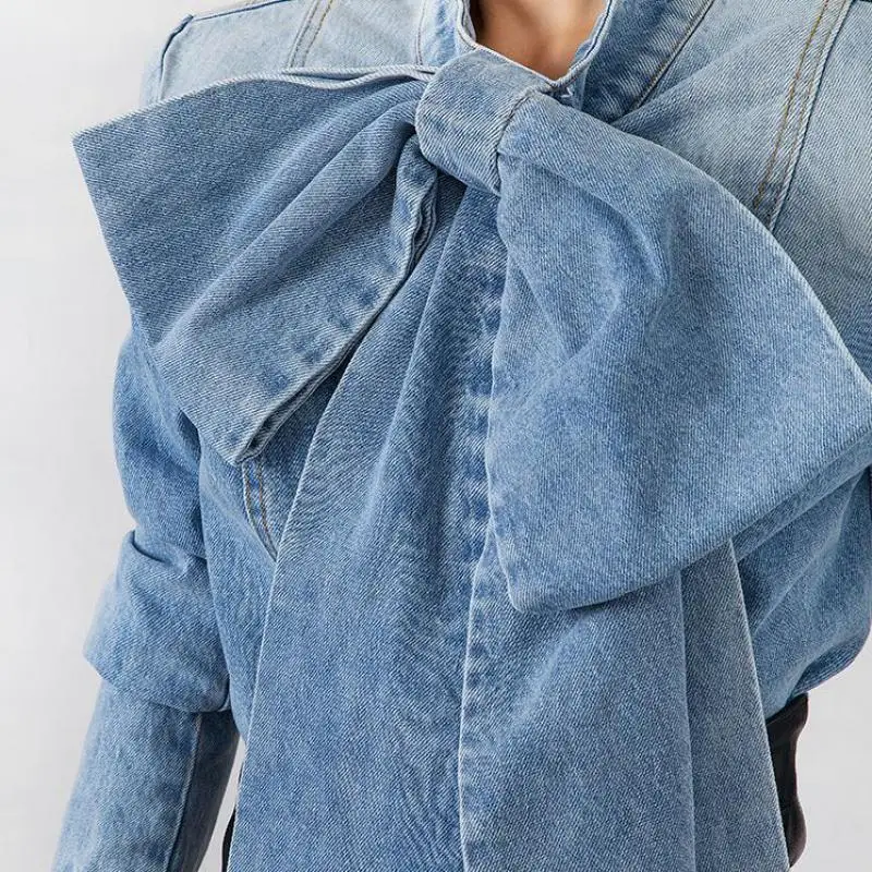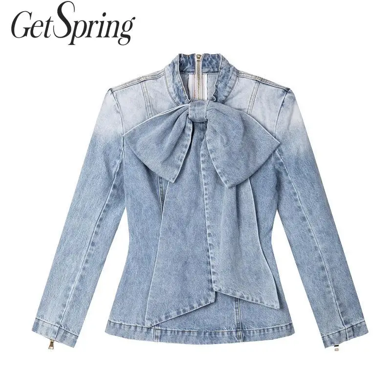 GetSpring женская блузка джинсовая рубашка с длинным рукавом джинсовые блузки ретро с бантом женская рубашка универсальные Дамские топы весенний Топ 2021 модная
