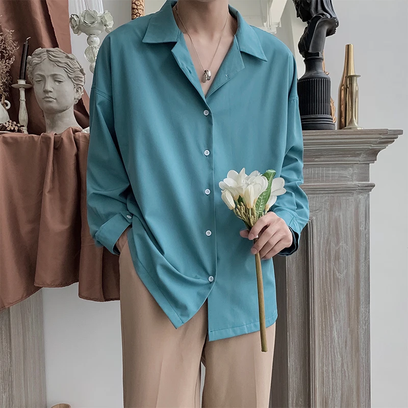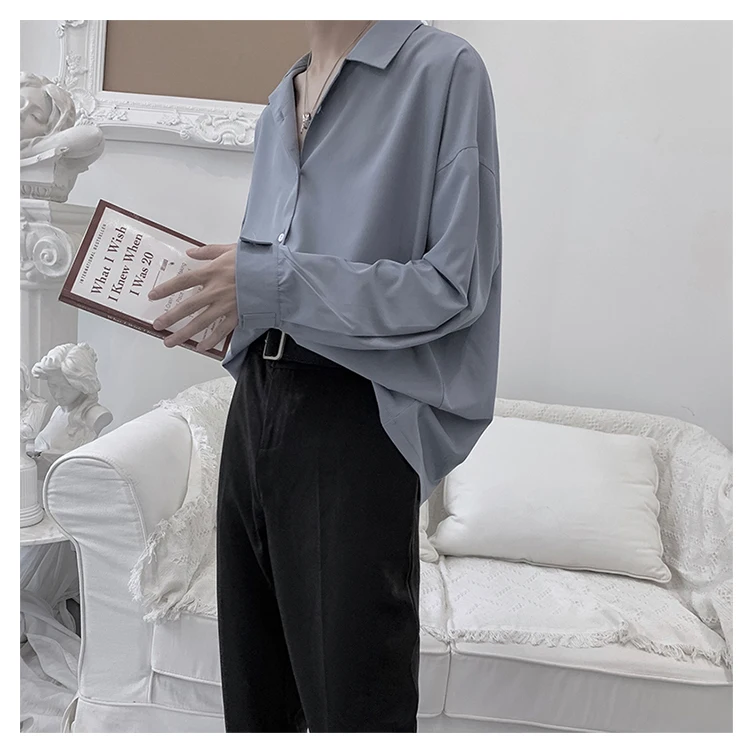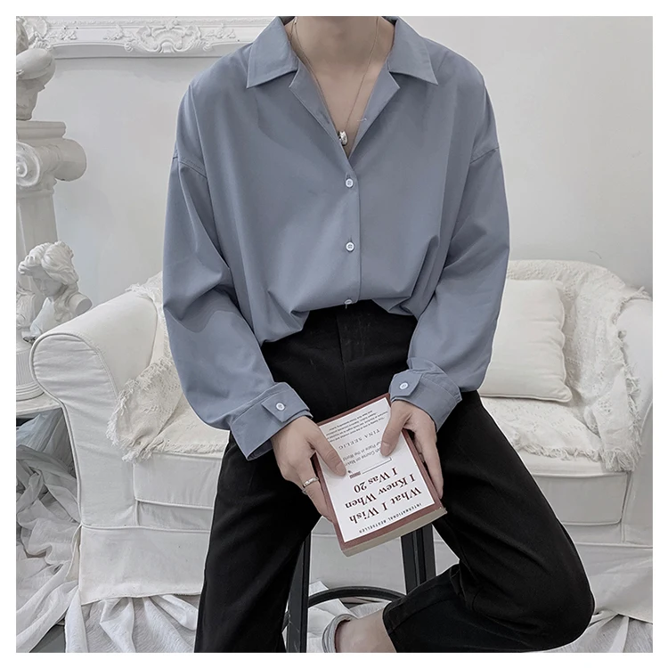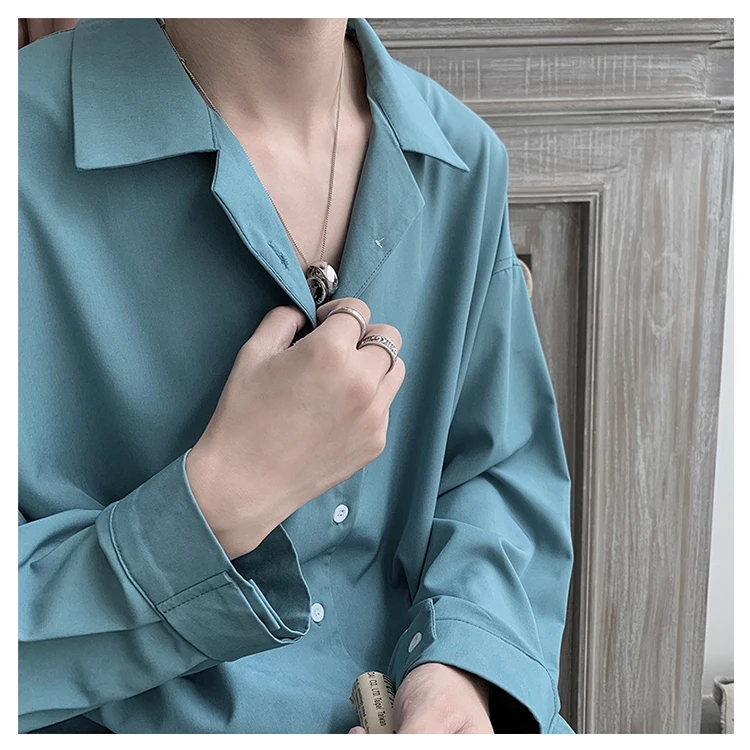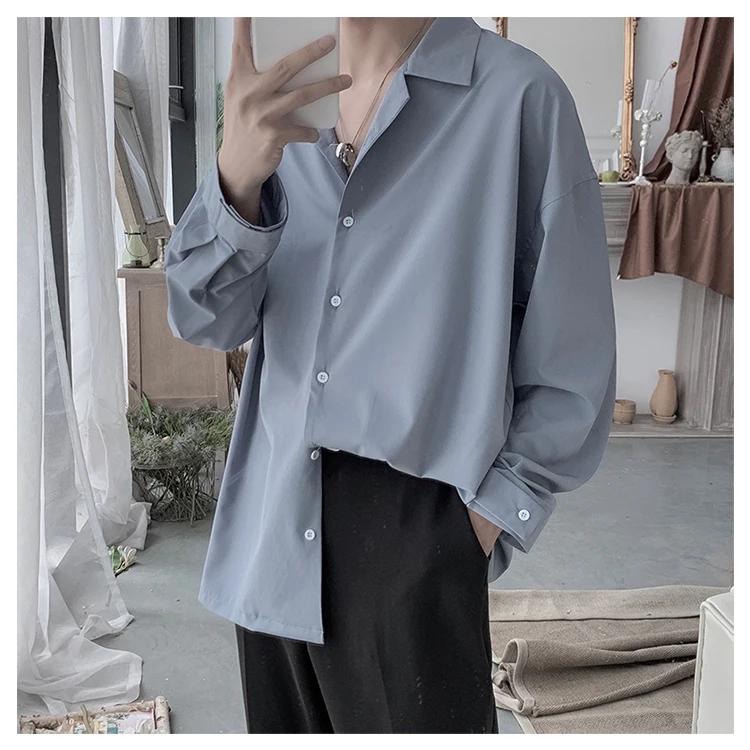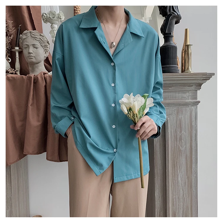 Мужская гавайская рубашка с длинными рукавами, однотонная модная одежда с французскими манжетами, модель 2021 года