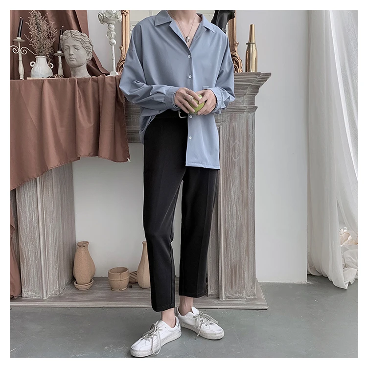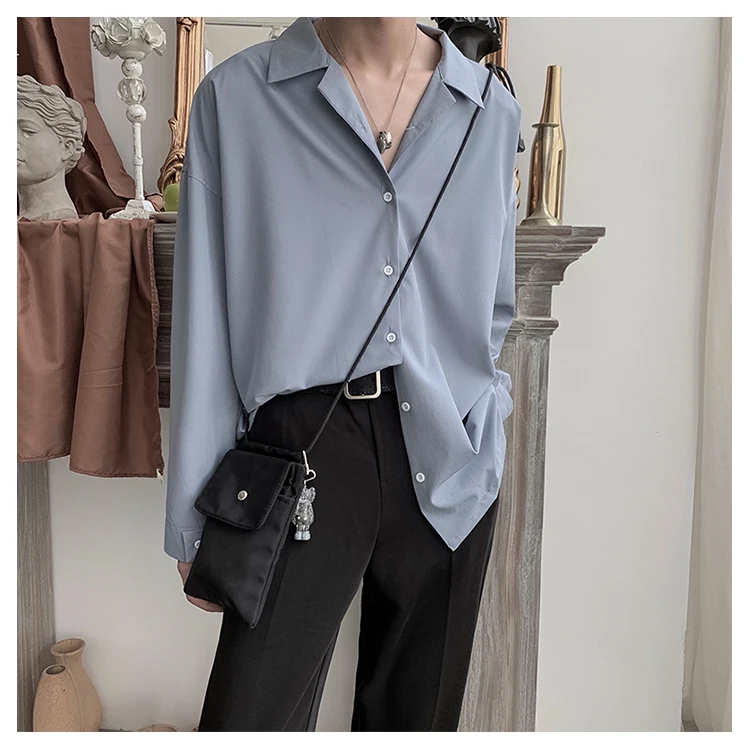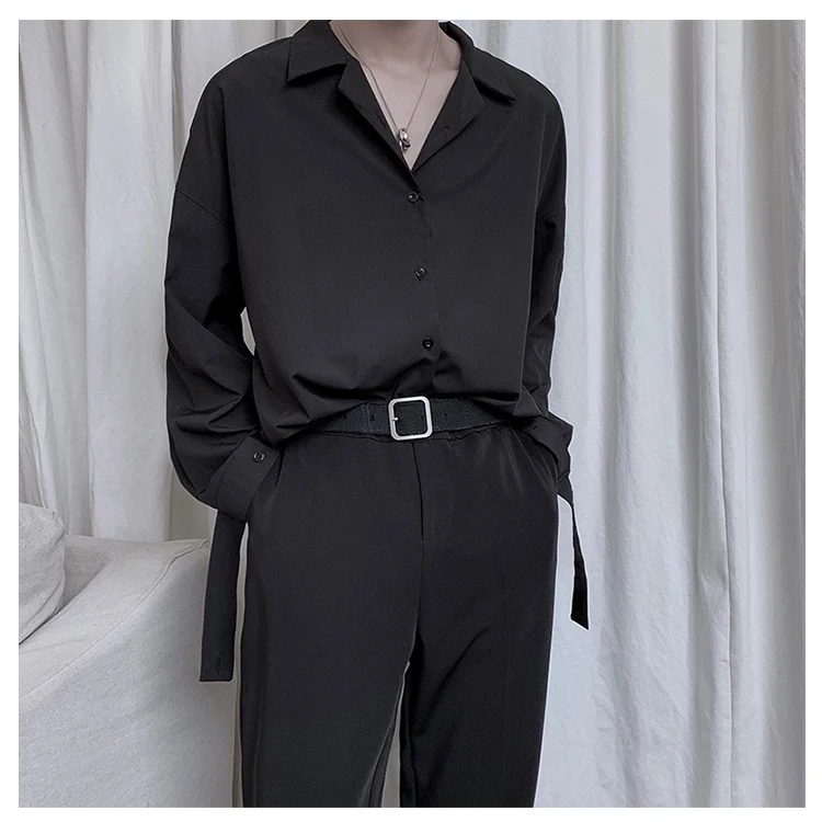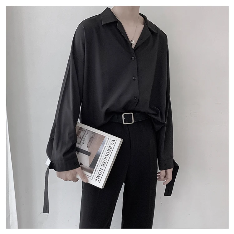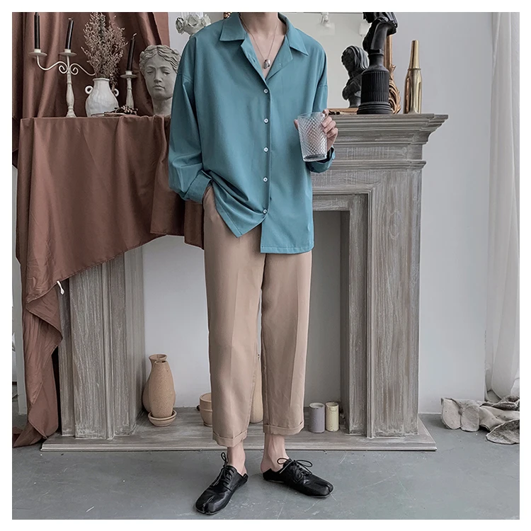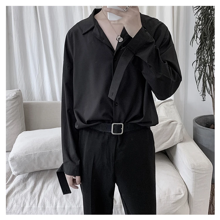 Мужская гавайская рубашка с длинными рукавами, однотонная модная одежда с французскими манжетами, модель 2021 года