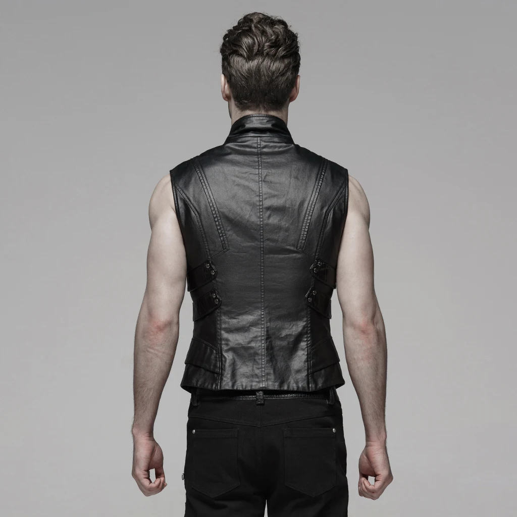 Мужской жилет в стиле панк-рейв, черный тканевый жилет с челноком для выступлений на сцене, короткий жилет в стиле рок