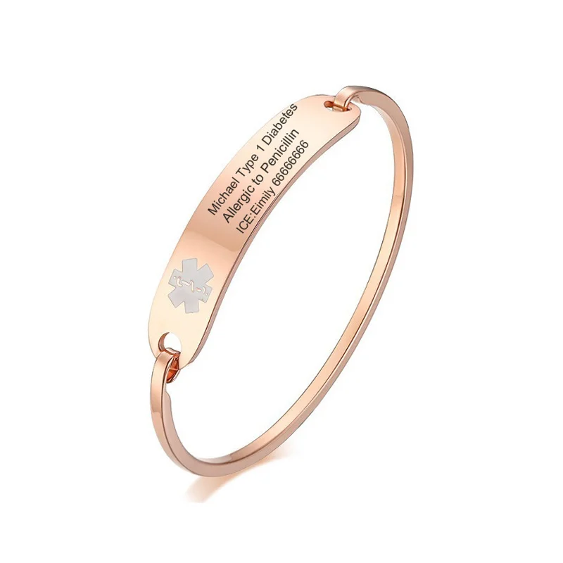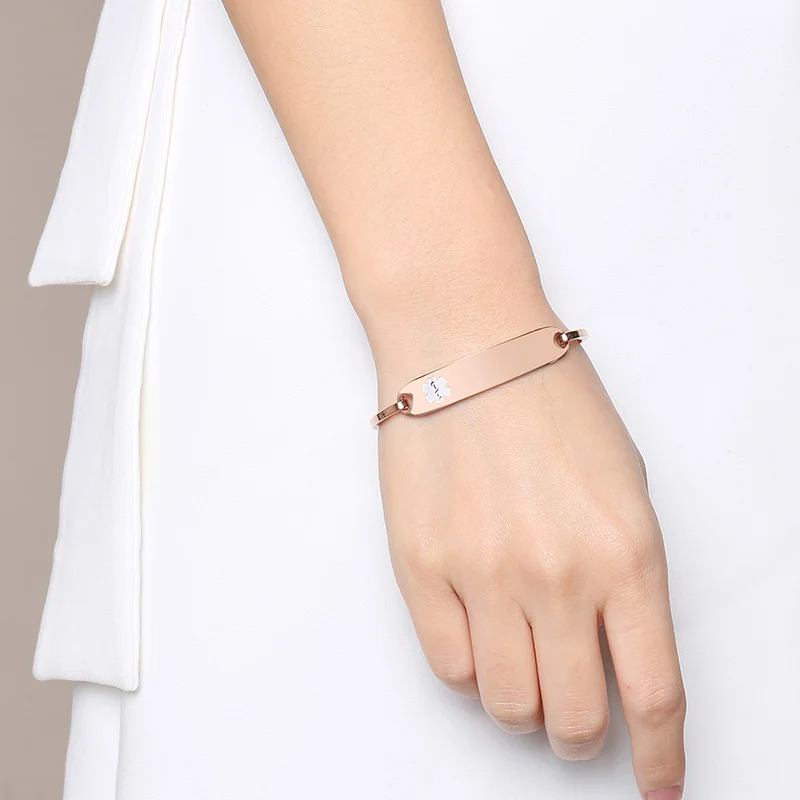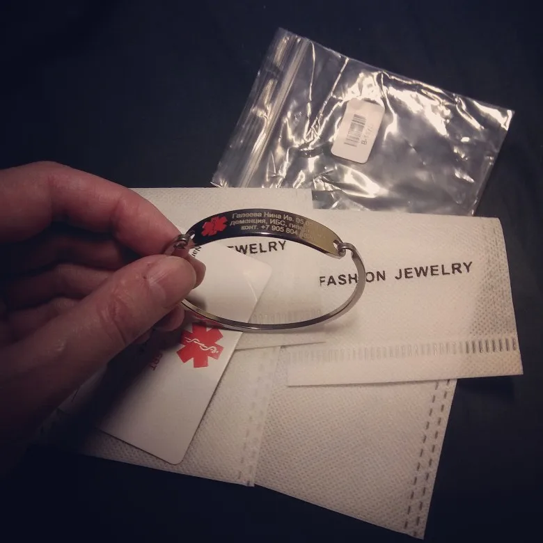Общие причины ношения медицинских идентификационных браслетов:*(1) физическая аллергия, включая укусы насекомых, минлинзы, виды продуктов питания*(2) физические состояния, включая сердечные состояния, судороги, обход желудка, астму*(3) Медицинская аллергия, включая лекарственные препараты, латекс, химические вещества*(4) Медицинские состояния, включая диабет, ИТП, аутизм, альцгеймеры.*(5) по умолчанию выгравирована на передней части браслета