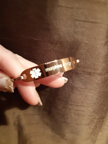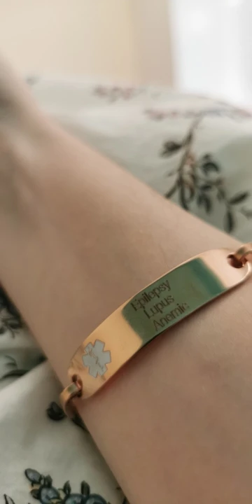 Очень красивый браслет, мне нравится цвет и минимальный стиль. У меня есть волнообразная форма (почек, крови, CNS, sle) и довольно сильный случай эпилепсии, и этот браслет делает меня более уверенным, так как я хочу, чтобы не быть центром внимания, пугающие люди, просыпаются в машинах скорой помощи или в ER, не зная, что у меня есть. Браслет поставляется с медицинской картой и в симпатичном кармане. Я настоятельно рекомендую вам получить этот браслет, если у вас есть незаметная хроническая болезни или нет органа.