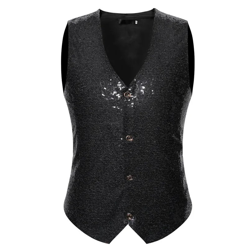 Черный Блестящий жилет с блестками, мужской жилет для ночного клуба, мужской сценический костюм певицы, мужской костюм вечерние ринки, свадьбы, костюм для жениха, мужской жилет