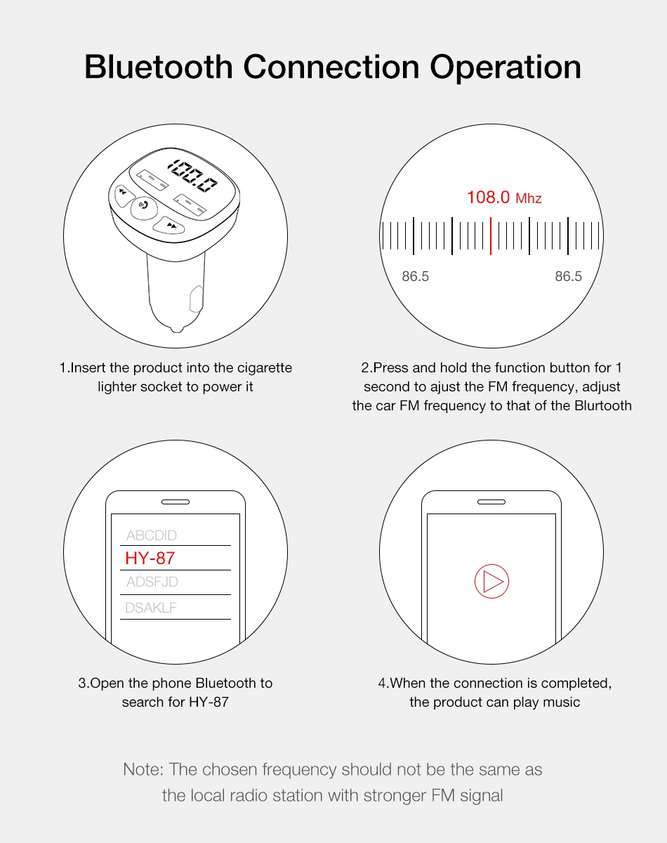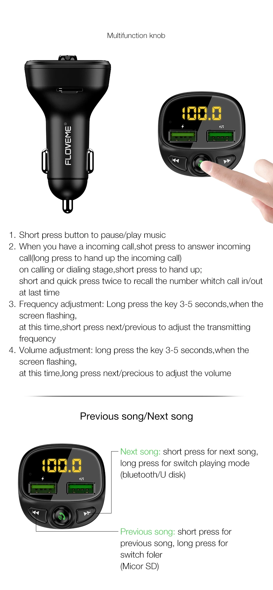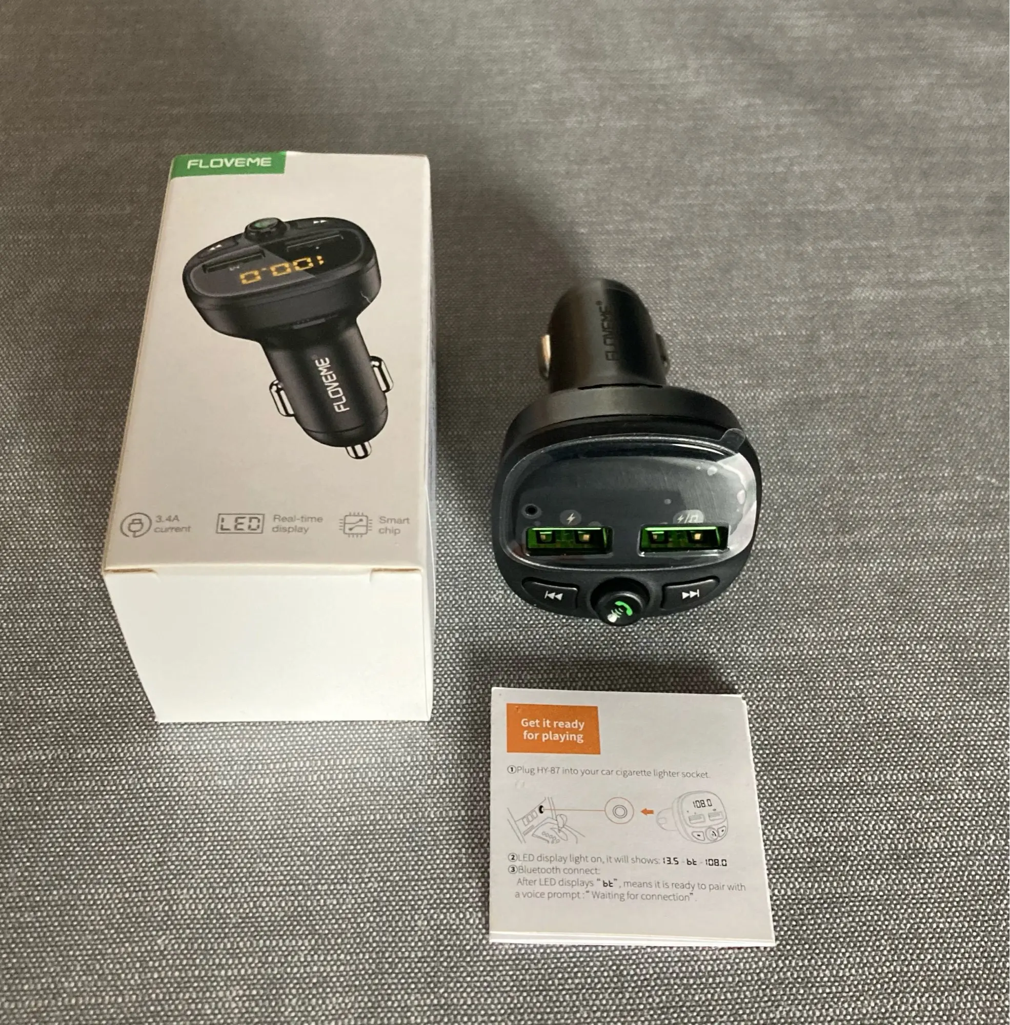 Автомобильное зарядное устройство FLOVEME, Fm-передатчик, Bluetooth, 2 USB-порта.