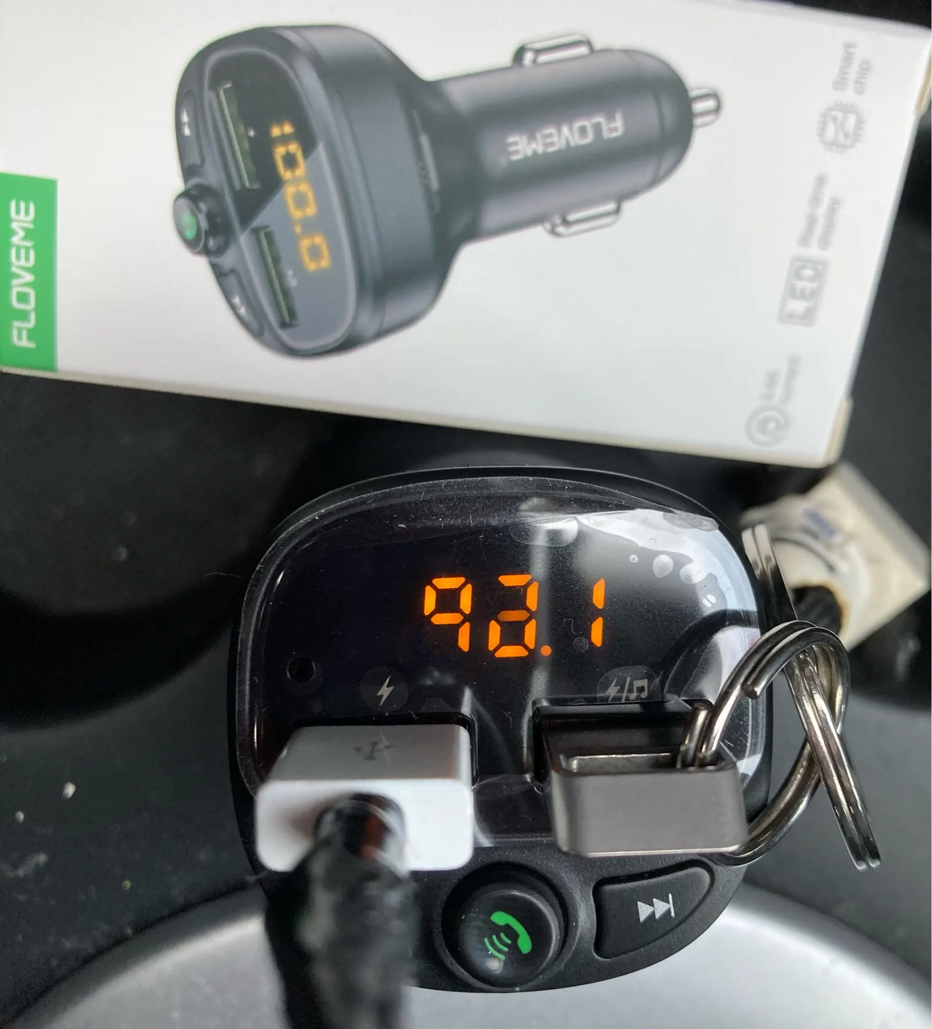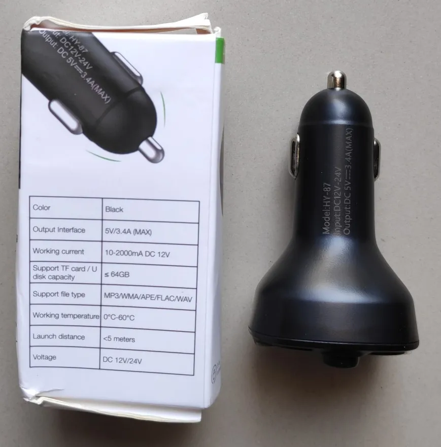 Маленькое милое автомобильное зарядное устройство fm-передатчик. Отлично работает.