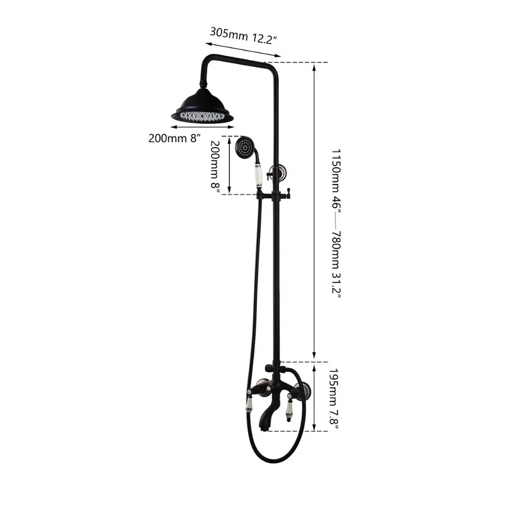 YANKSMART, винтажный, для ванной комнаты, черный, настенный, 8 дюймов, душевой набор, 3 функции, смеситель, клапан, кран, набор, смеситель для душа в форме дождя, кран, набор