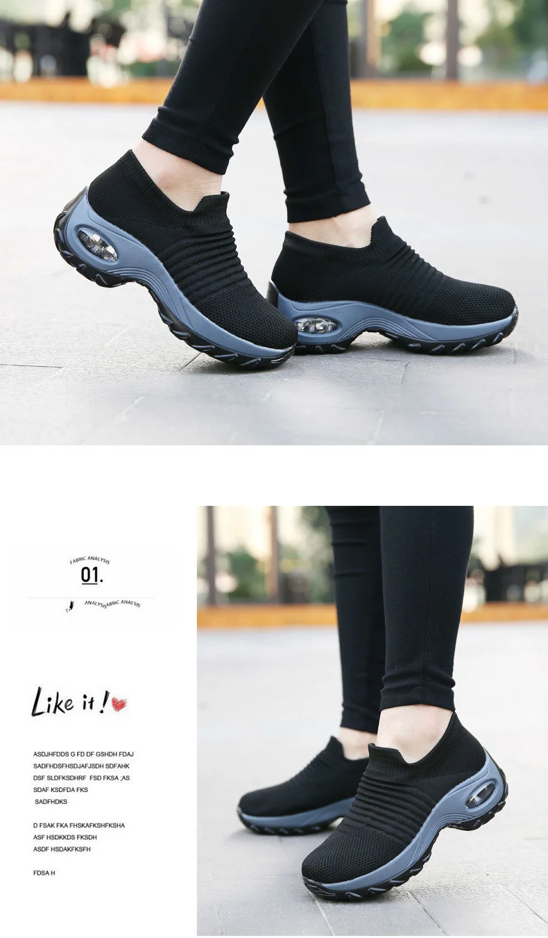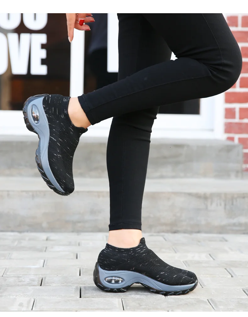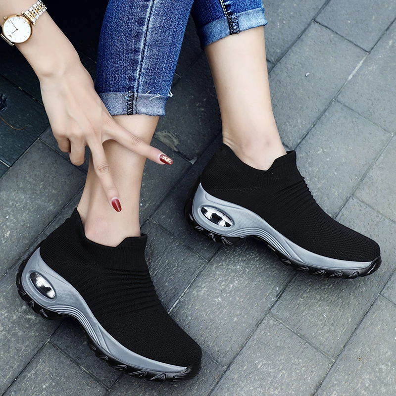 Модные женские теннисные туфли из дышащей сетчатой ткани, увеличивающие рост, без шнуровки, женские носки, кроссовки на толстой платформе