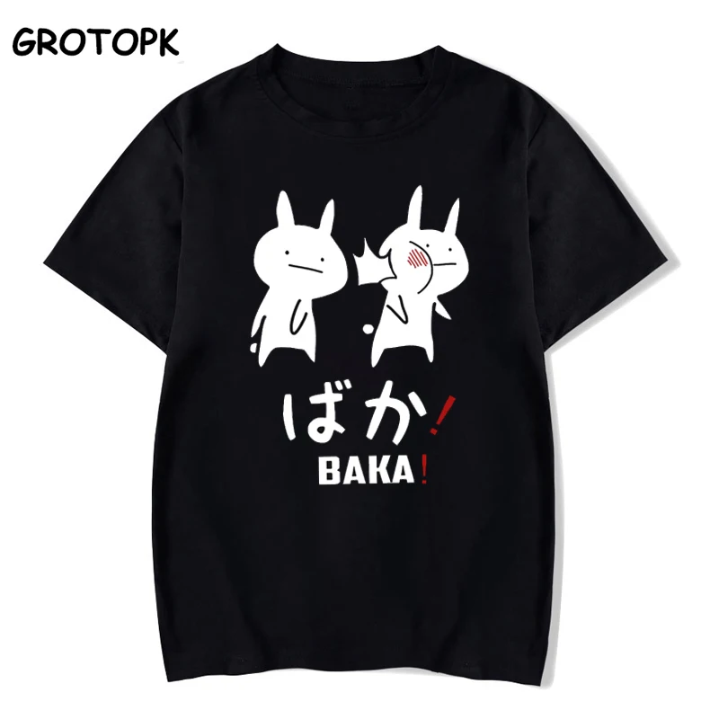 Футболка Baka с кроликом для пары японских подруг, летняя женская черная футболка, уличная одежда в стиле Харадзюку, Мужская одежда, хлопковая рубашка с аниме