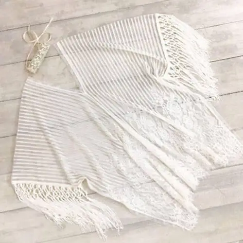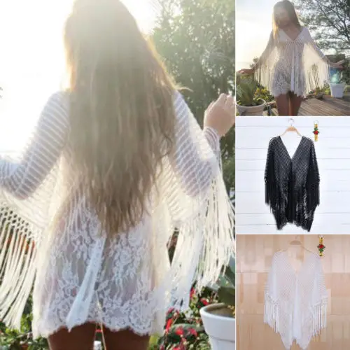 Купальник женский кружевной с кисточками, Пляжная накидка с цветочн...