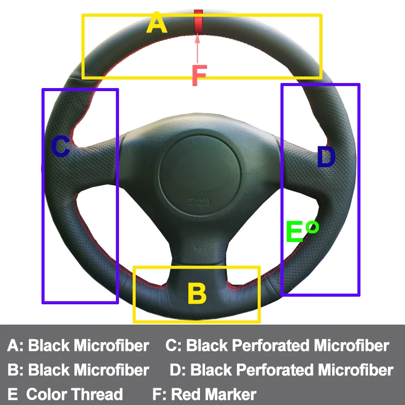 HuiER ручной шить чехол рулевого колеса автомобиля Красный Маркер Н...