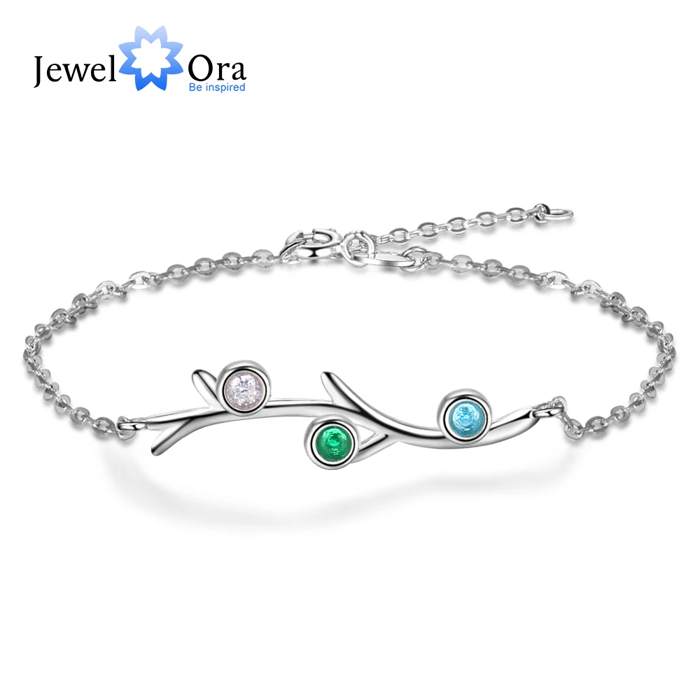 Индивидуальные браслеты, 3 камня, браслеты для женщин, ветки, персонализированный подарок, свадебные украшения (JewelOra BA102559)