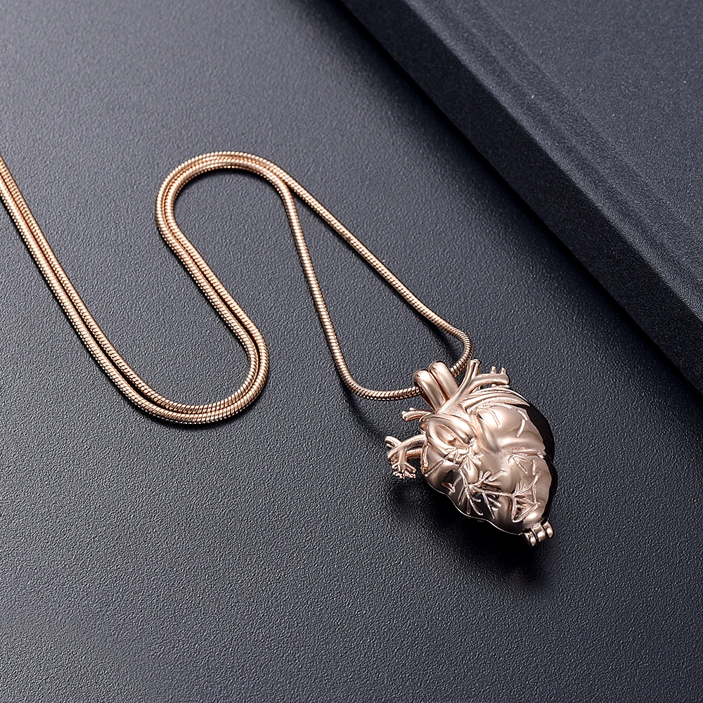 Ожерелье IJD10000 из нержавеющей стали розового цвета с анатомическим сердцем, орган кремации, подвеска урна для памяти