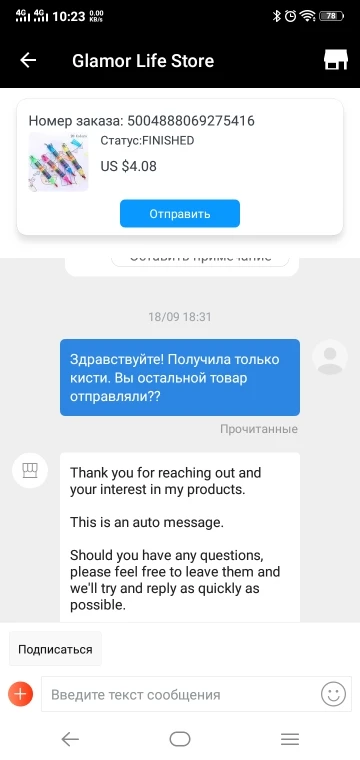 Не получила, просто не отправили. Продавец из 3 позиций выслал только 1, написала ему еще в сентябре, он обещал выслать остальное, но до ноября сам продлял защиту. Когда защита закончилась начал давать левые треки. Этого продавца я бы не рекомендавала. Открыла спор, он начал утверждать, что все отправил,.. пока жду что Али решит.