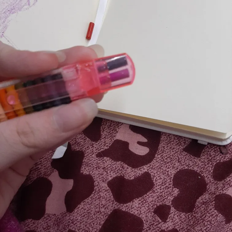 пришёл супер быстро, за доставку отдельный плюс. товар неплохой, и так ясно, что он скорей для детсокого творчества, но за такую цену нет смысла жаловаться. Советую если вы студент/ученик, и хотите рисовать цветным предметом и не носить с собрй кучу цветов по отдельности. детали конечно не прорисуешь, но на такие 5 минутные скетчи сойдёт