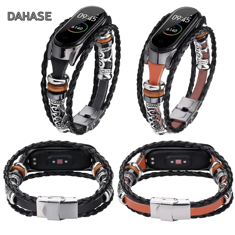 Винтажный кожаный браслет с бусинами, Плетеный ремешок для Xiaomi M...