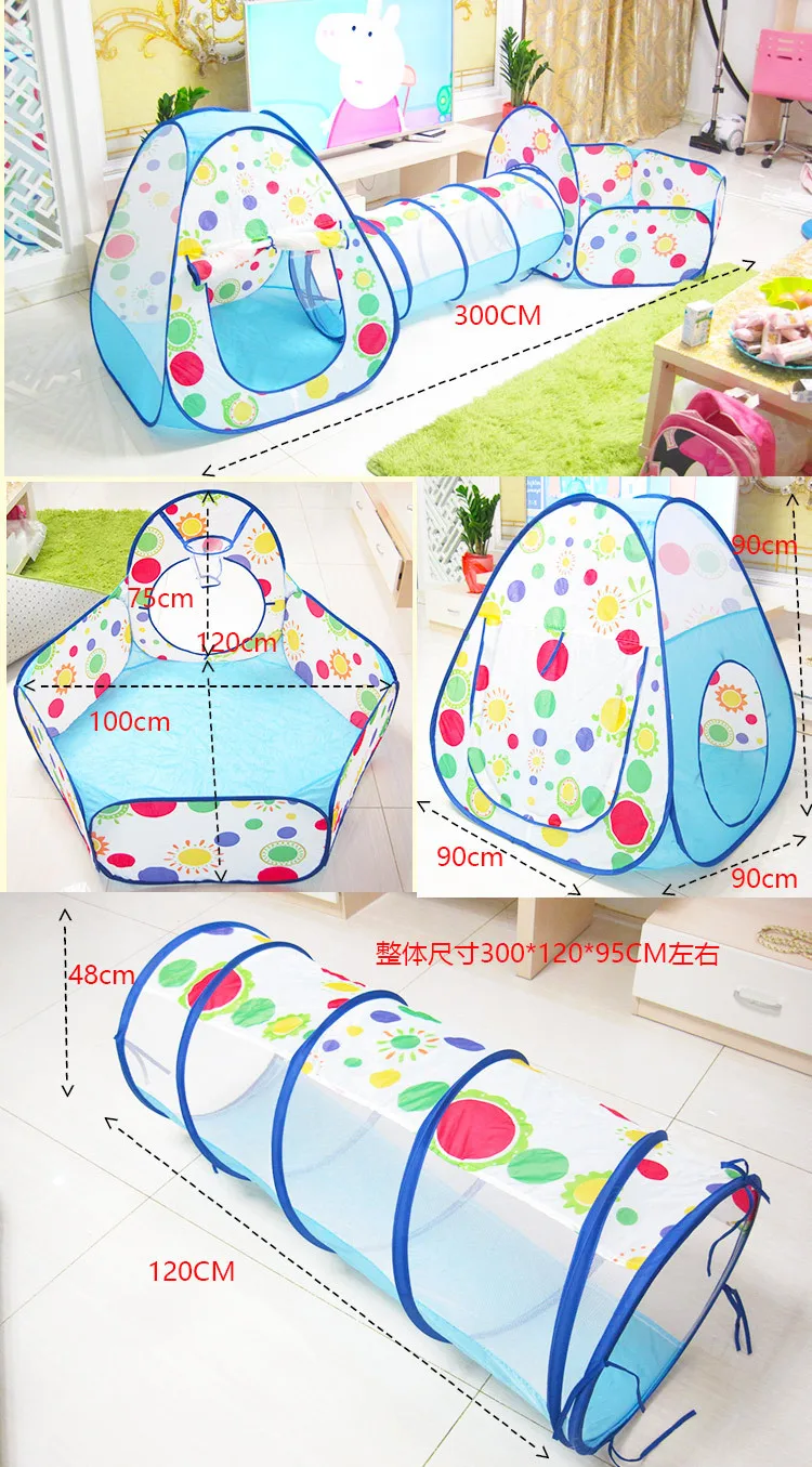 Детская палатка Три в одном, баскетбольный бассейн, туннель для ползания, игровая комната, детская игрушка для 0-3 лет + Океанский мяч