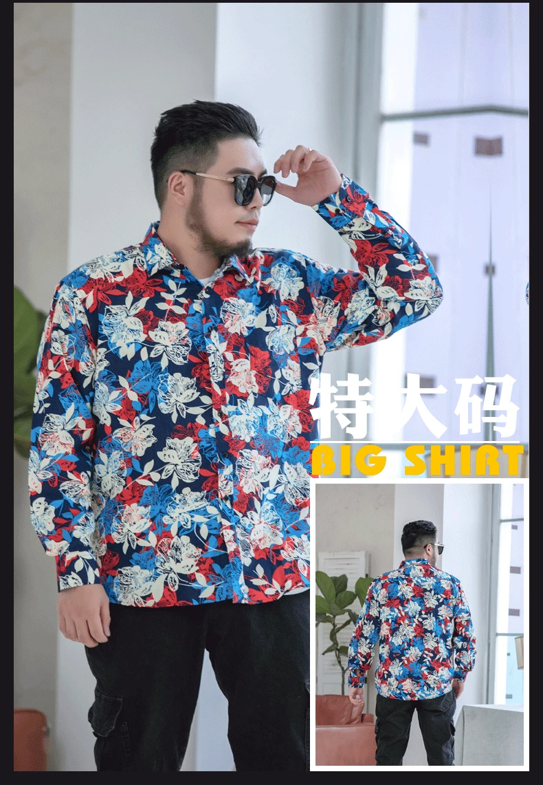 Новое поступление, модные мужские свободные супер большие красивые повседневные рубашки с цветочным принтом и длинным рукавом размера плюс