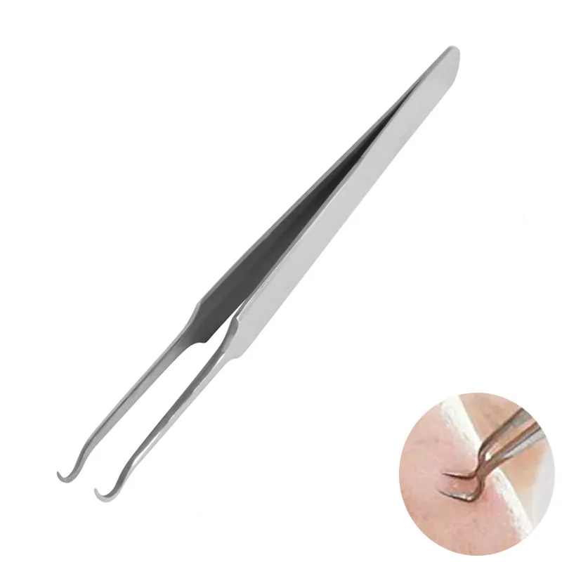 1 шт., инструмент для удаления угрей из нержавеющей стали, пинцет для удаления угрей, Изогнутый пинцет для удаления угрей, экстрактор угрей