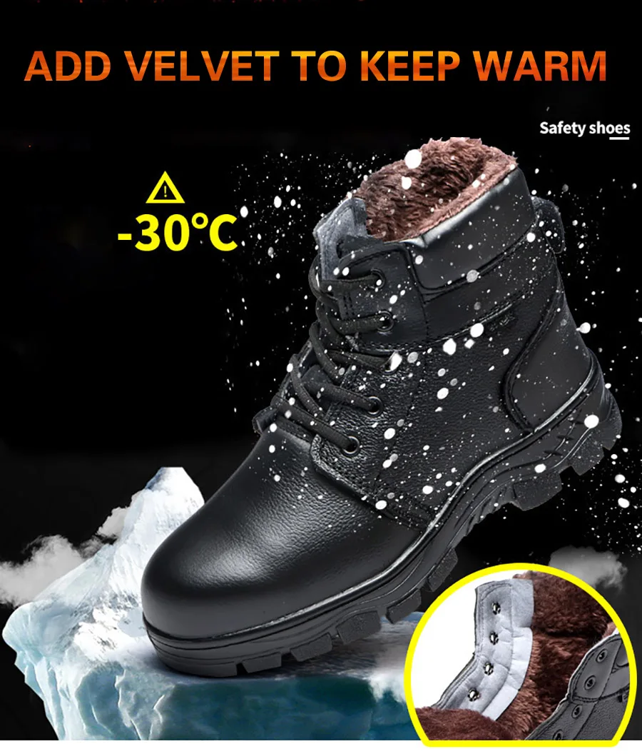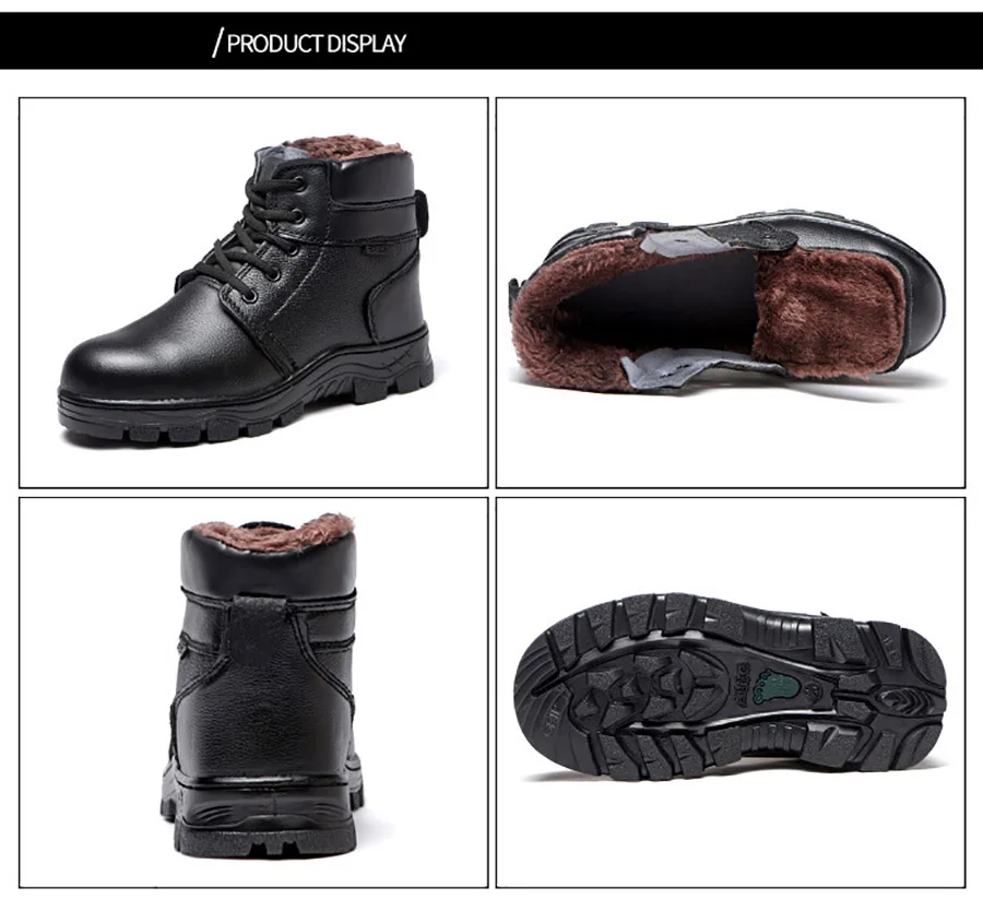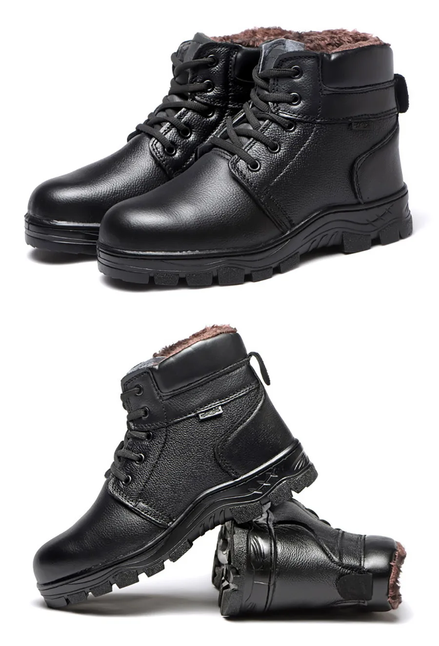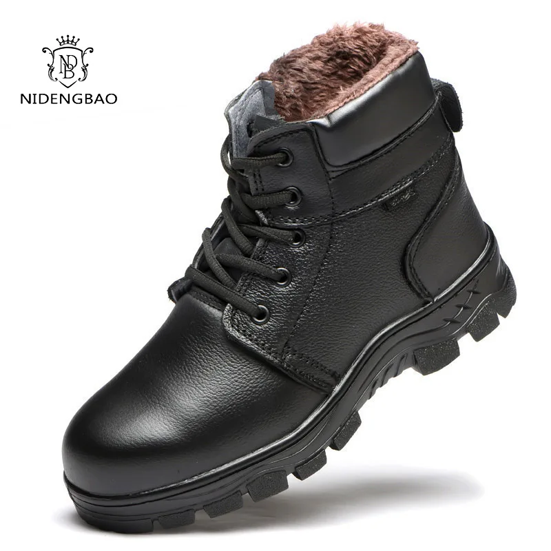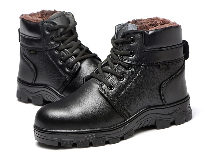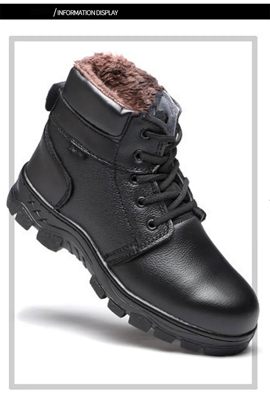Мужские ботинки из коровьей кожи, зимние рабочие ботинки с хлопковой подкладкой, с защитой от прокалывания, Размеры 35-46