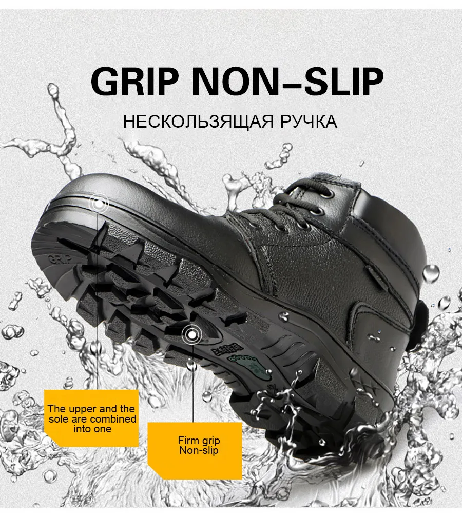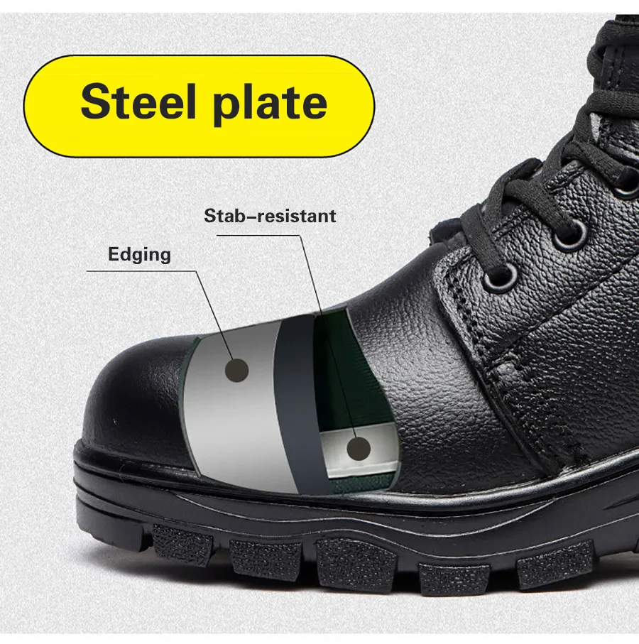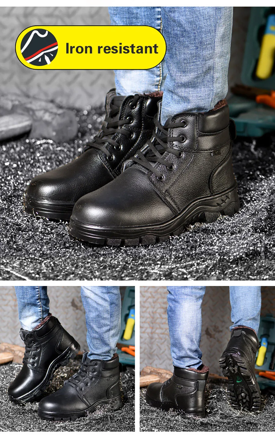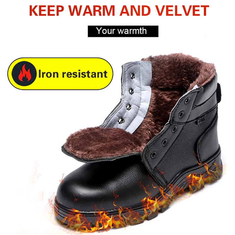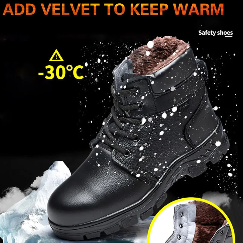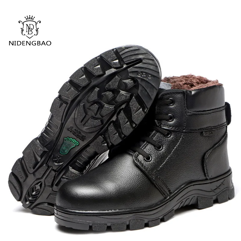 Мужские ботинки из коровьей кожи, зимние рабочие ботинки с хлопковой подкладкой, с защитой от прокалывания, Размеры 35-46