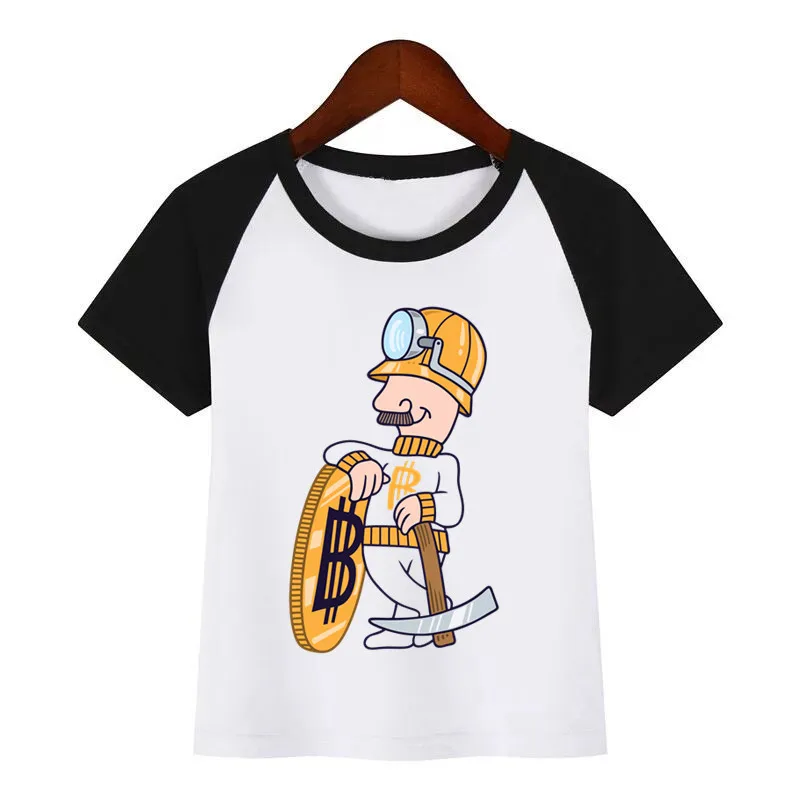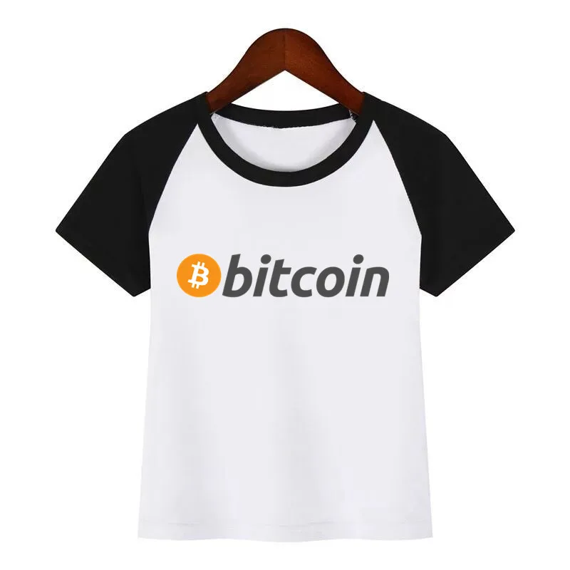 Футболка для мальчиков и девочек с принтом логотипа биткоина из аниме валюты детская забавная Одежда Рождественская летняя футболка