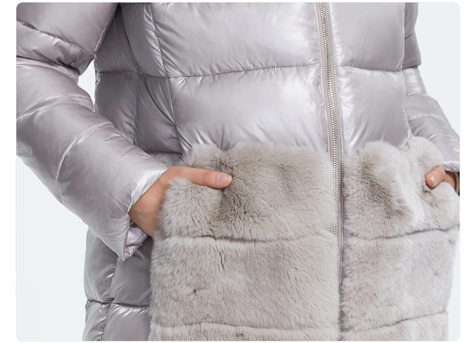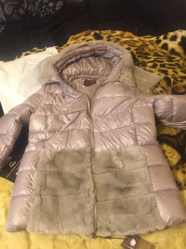 Куртка красивая, размер соответствует сетке, мех кролика натуральный, на капюшоне отстёгивается, на карманах нет.