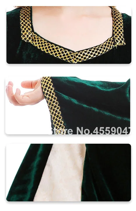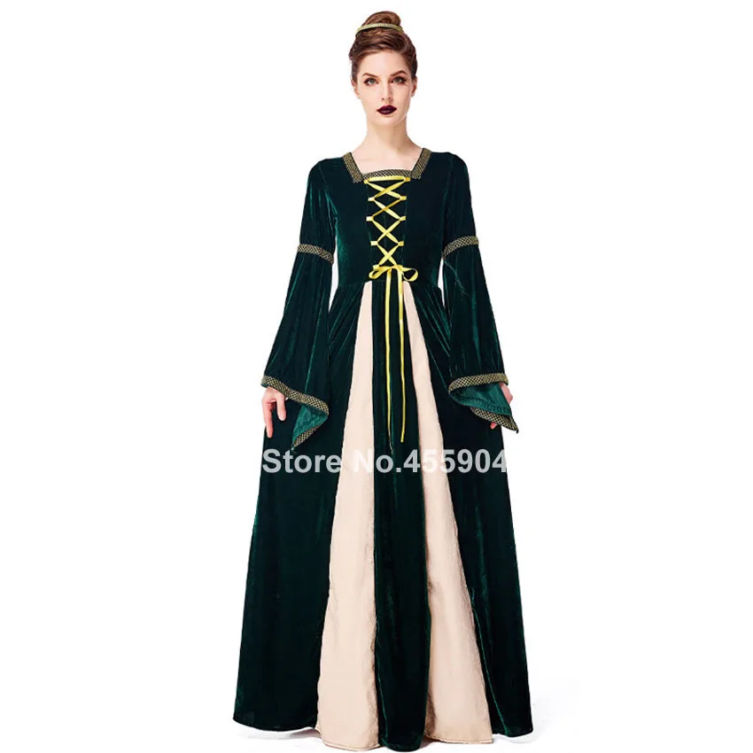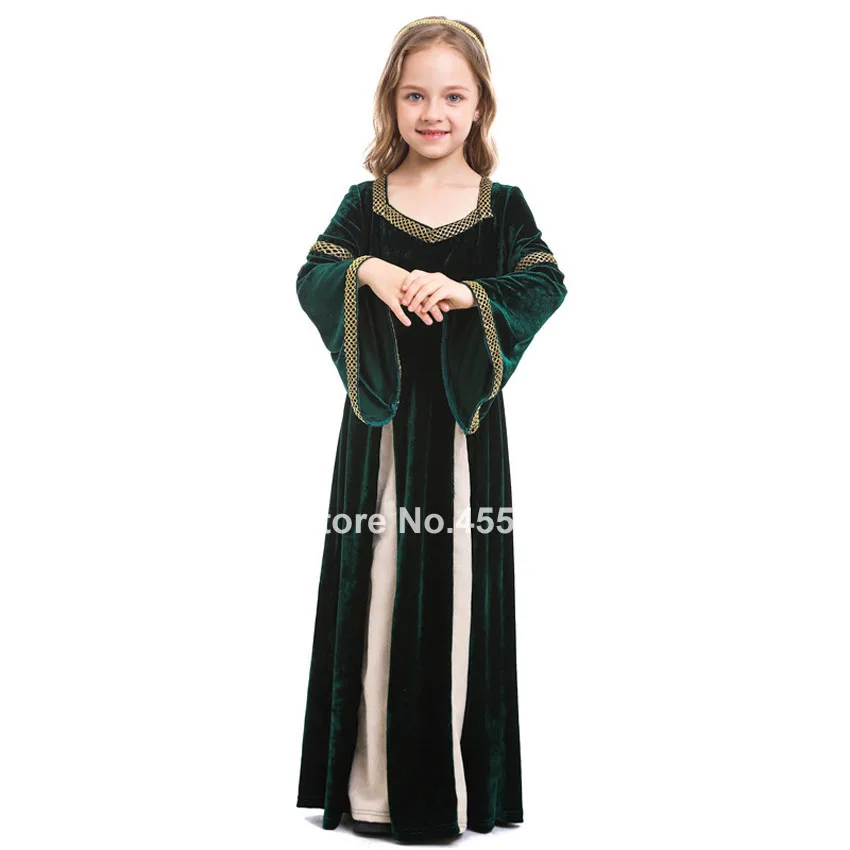 Зеленые элегантные длинные вечерние платья для женщин; Средневековые Костюмы для костюмированной вечеринки; Костюмы в стиле ренессанс на Хэллоуин; Длинное платье для девочек