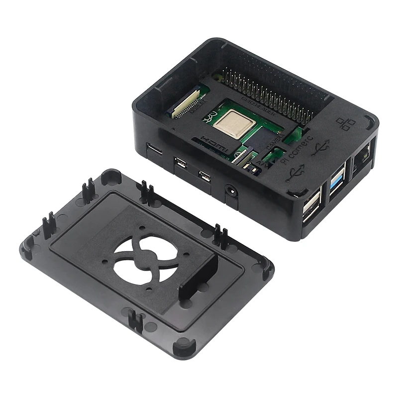Чехол для Raspberry Pi 4, корпус из АБС-пластика, черный корпус, совместимый с охлаждающим вентилятором для Raspberry Pi 4, Модель B
