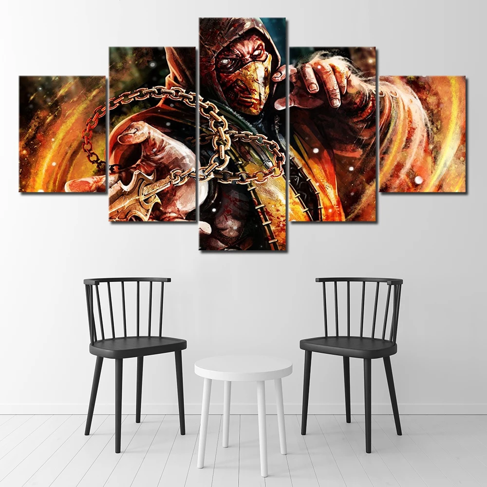 Художественная настенная Модульная картина Hd картина 5 шт. Mortal kombat с принтом из игры домашний плакат холст прикроватный фон Декор