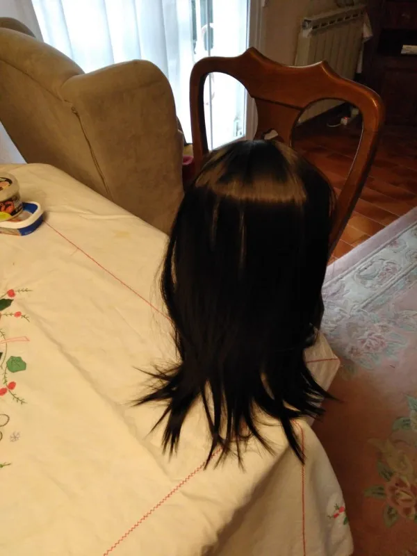 волосы чисто карнавальные, они хорошо сделаны, не лезут, сильно не блестят, думаю что можно укладывать, цвет натуральный, но все равно по оттенку никогда в свои волосы не попадешь, только если крашенные черные, по толщине волос тоже не попадешь. Но если полностью прикрывать свои короткие волосы, может быть ничего. Но как накладку на свои волосы - не советую.