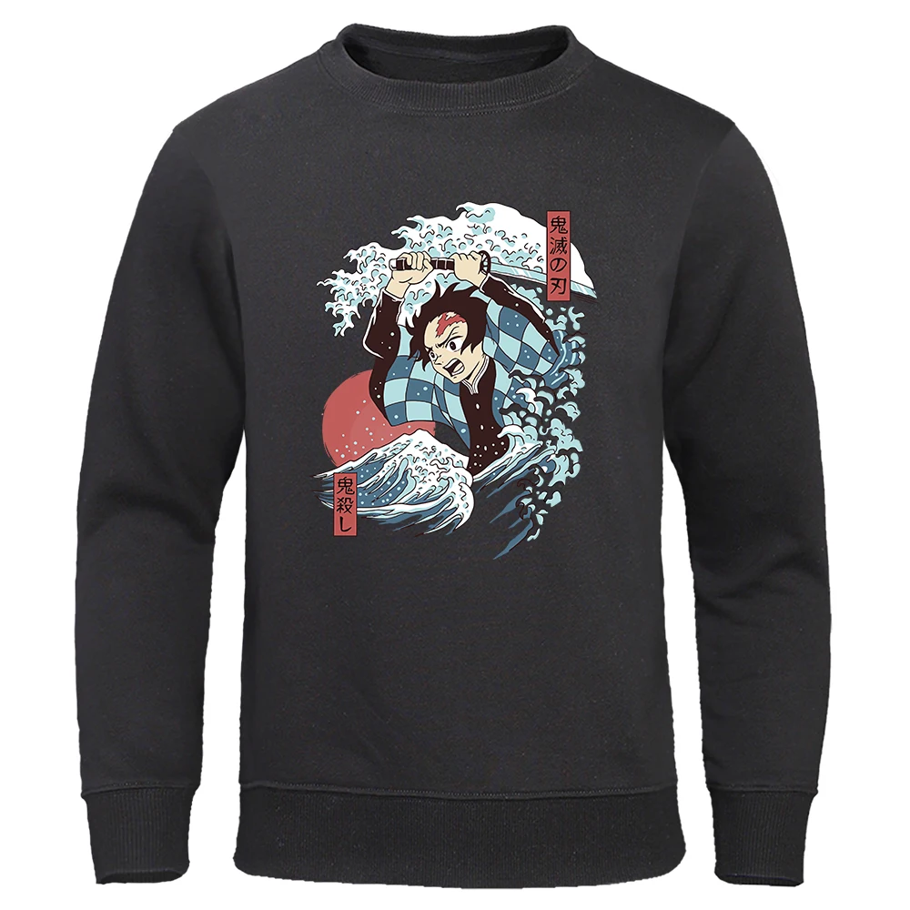 Толстовка мужская флисовая с капюшоном, свитшот с надписью рассекающий демонов, пуловер для Хэллоуина, забавная уличная одежда в стиле хип-хоп, Осень-зима