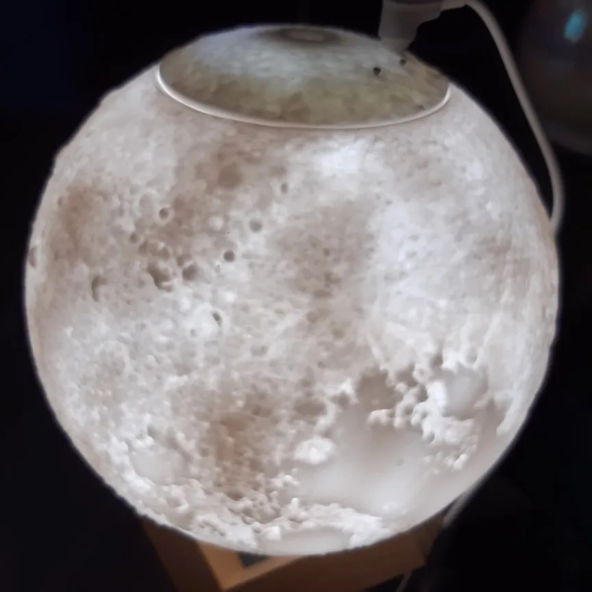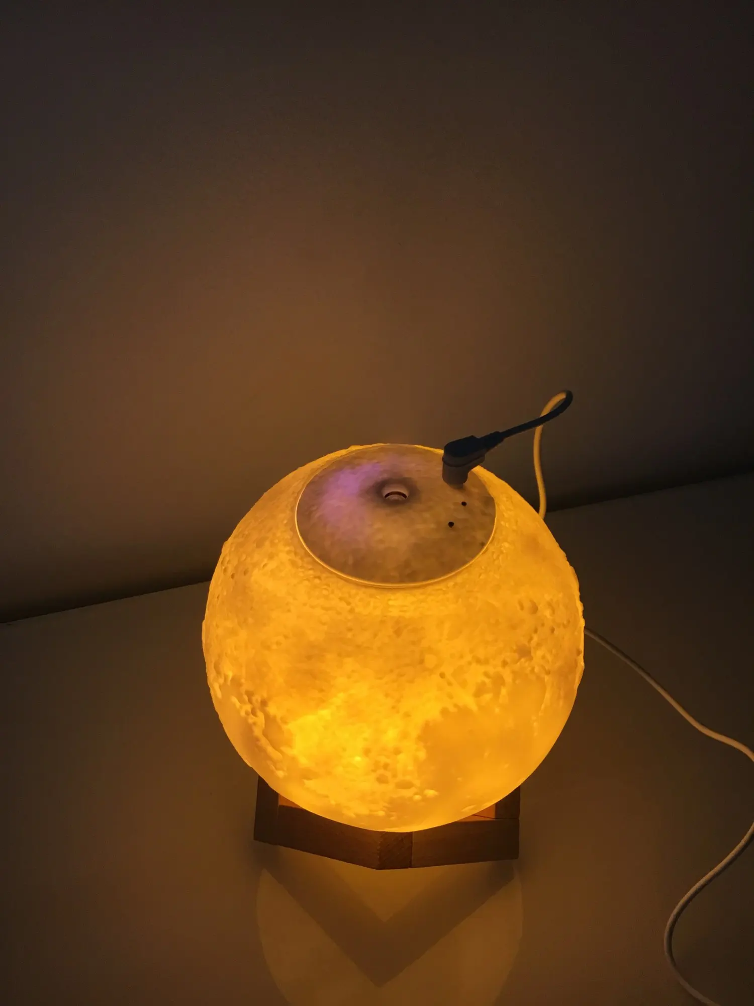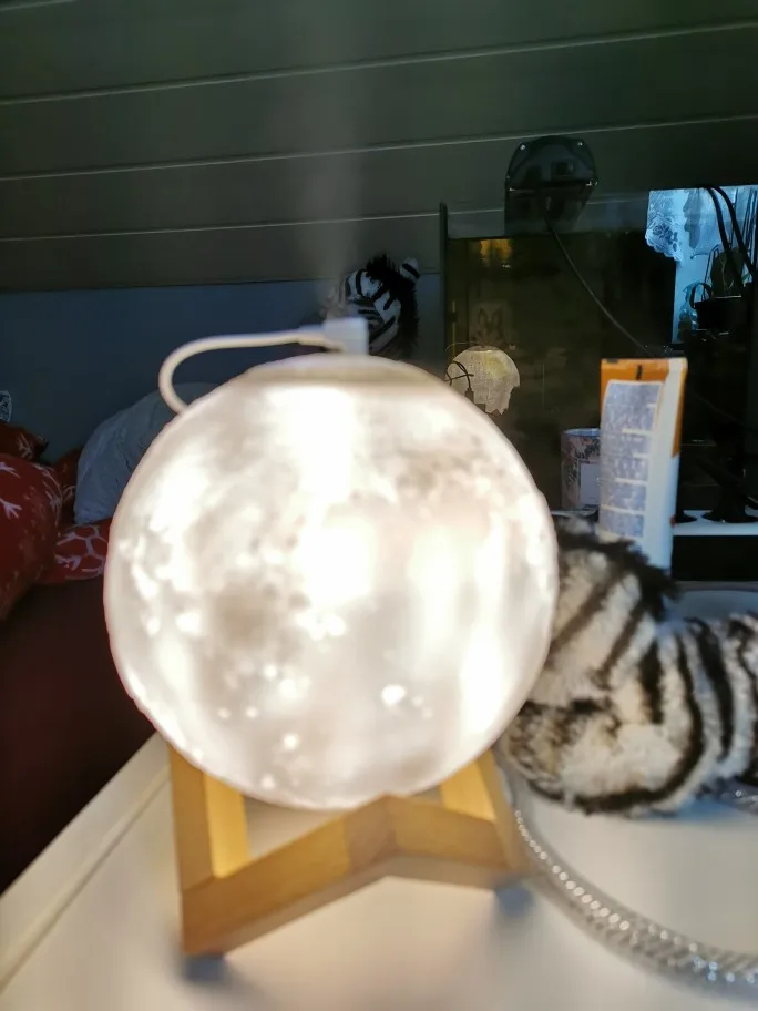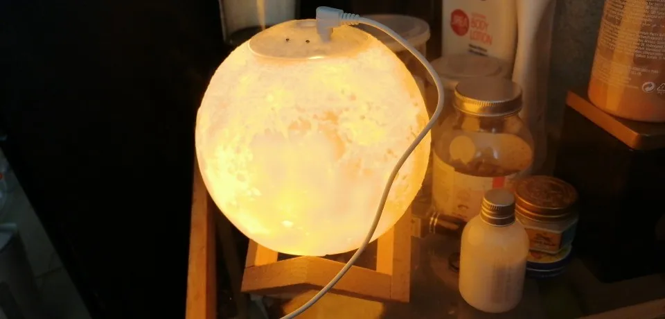 Мне нравится, что это драгоценно так же, как лампа, как диффузор, она идет с запасными частями, у вас есть два способа поставить эту шину на весь путь или через некоторое время. Он также имеет белый свет и еще один более четкий orange, красиво выглядит как луна, я рекомендую его на 100%, и он идет идеально, кроме того, он пришел ко мне быстрее, чем я ожидал.