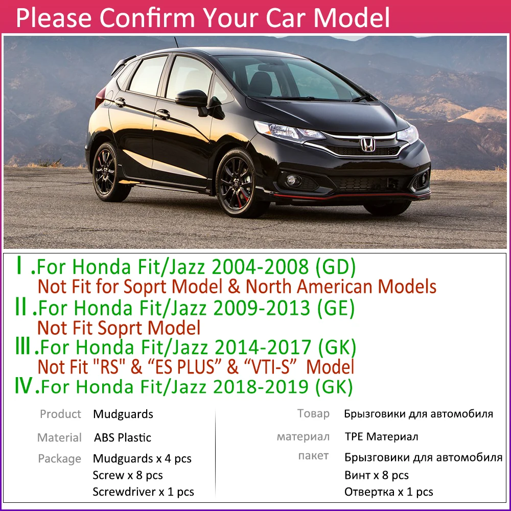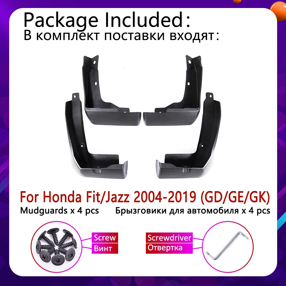 Брызговики для Honda Fit Jazz GD GE GK 2004 2019, аксессуары для брызговиков, 2005, 2010, 2016, 2017, 2018