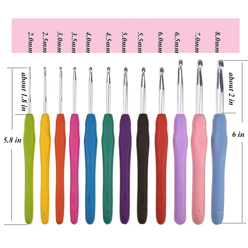Включает:14x2,0 мм/2,5 мм/3,0 мм/3,5 мм/4,0 мм/4,5 мм/5,0 мм/5,5 мм/6,0 мм/6,5 мм/7,0 мм/8,0 мм/9,0 мм/10.мм10 x Stich Makers1 x счетчик строк6 x пластиковые швейные иглы/спицы для пряжи3xCable переключатель Вязание иглы1 ножницы1 чехолМатериал: алюминиевый крючок + мягкий термопластичный пластикДлина вязальных игл: 14-15,2 см (прибл.)