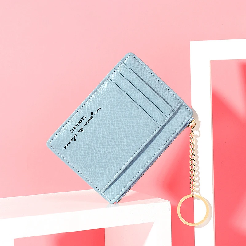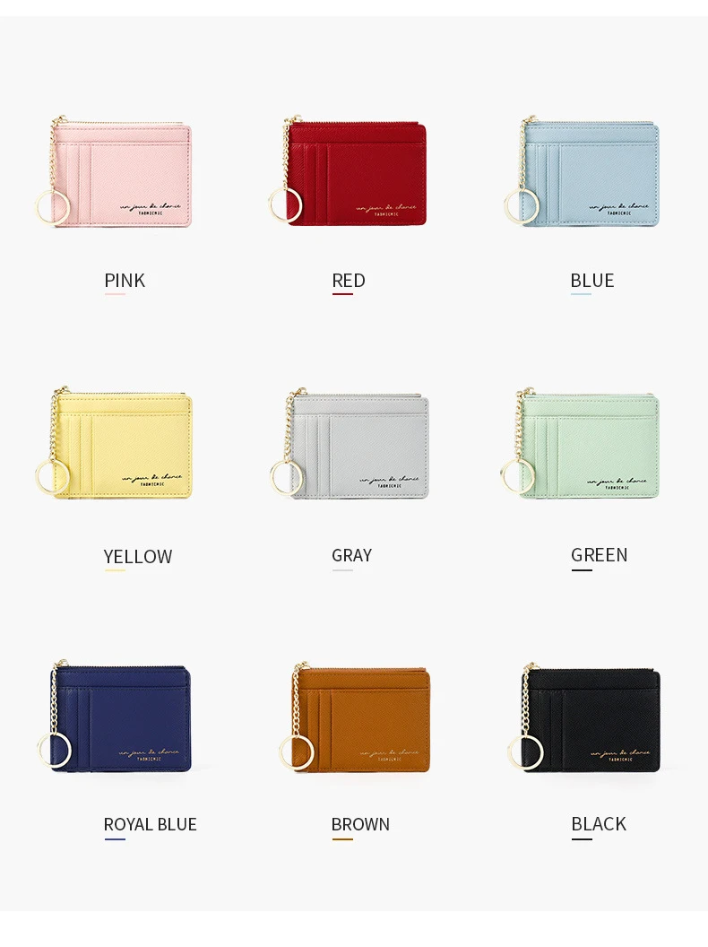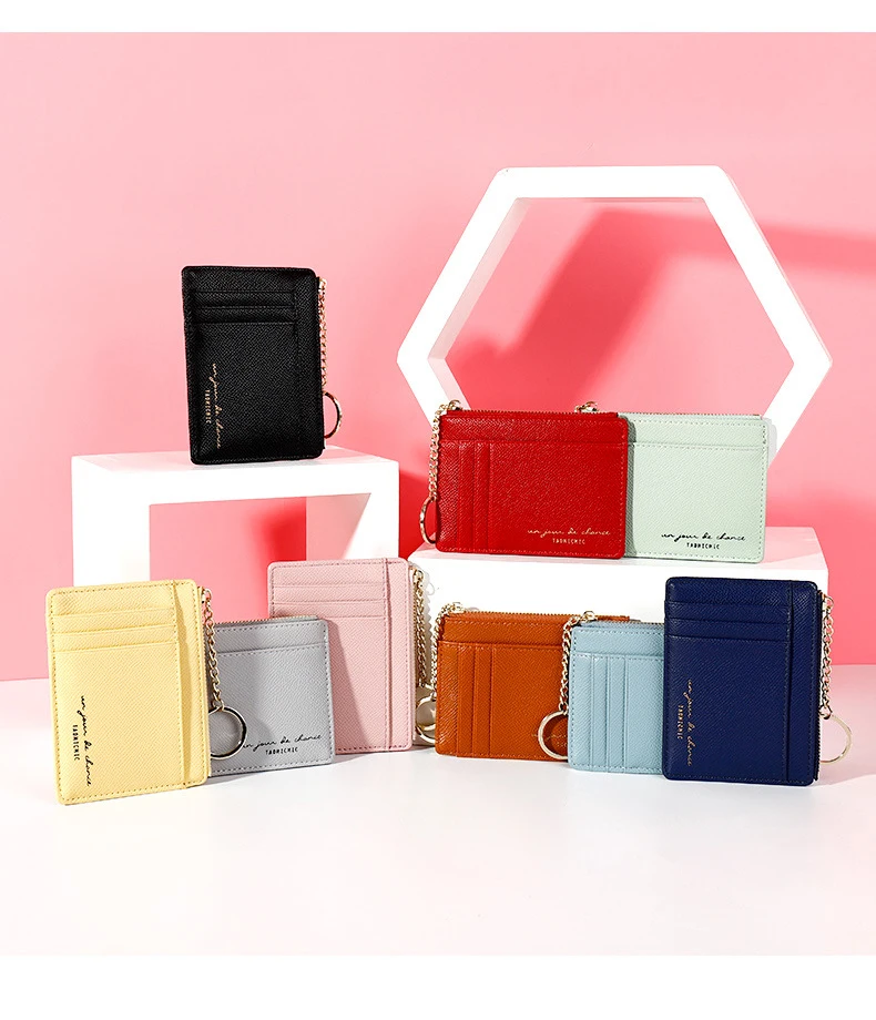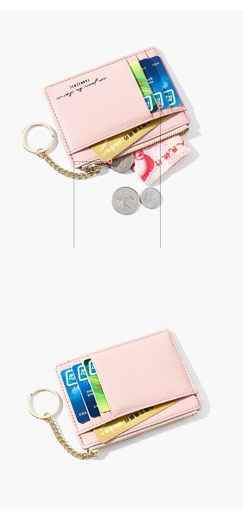 Повседневные Мини-кошельки на цепочке для женщин, простой буквенный брелок с карточкой на молнии, кошелек для монет, держатель для нескольких карт, женский маленький клатч