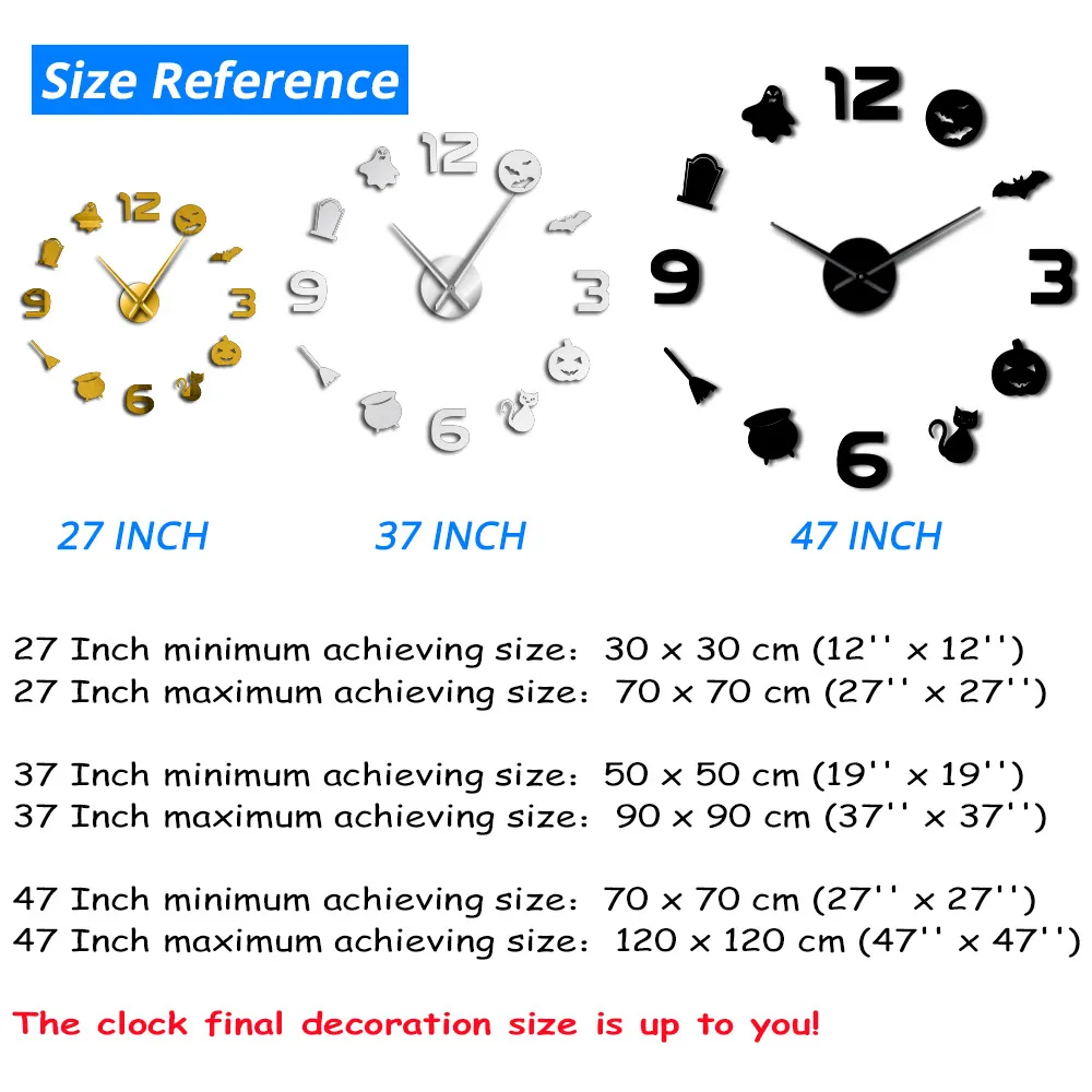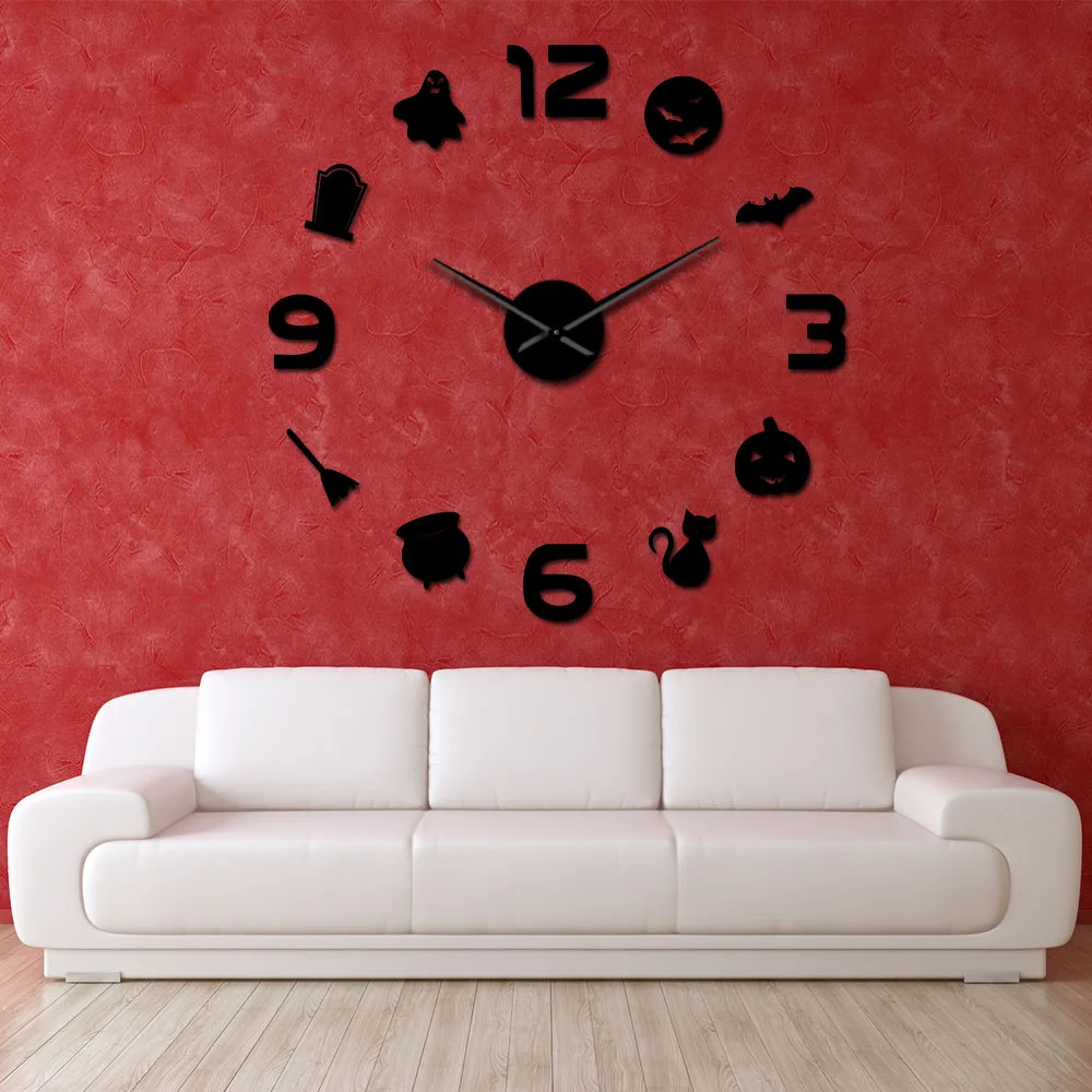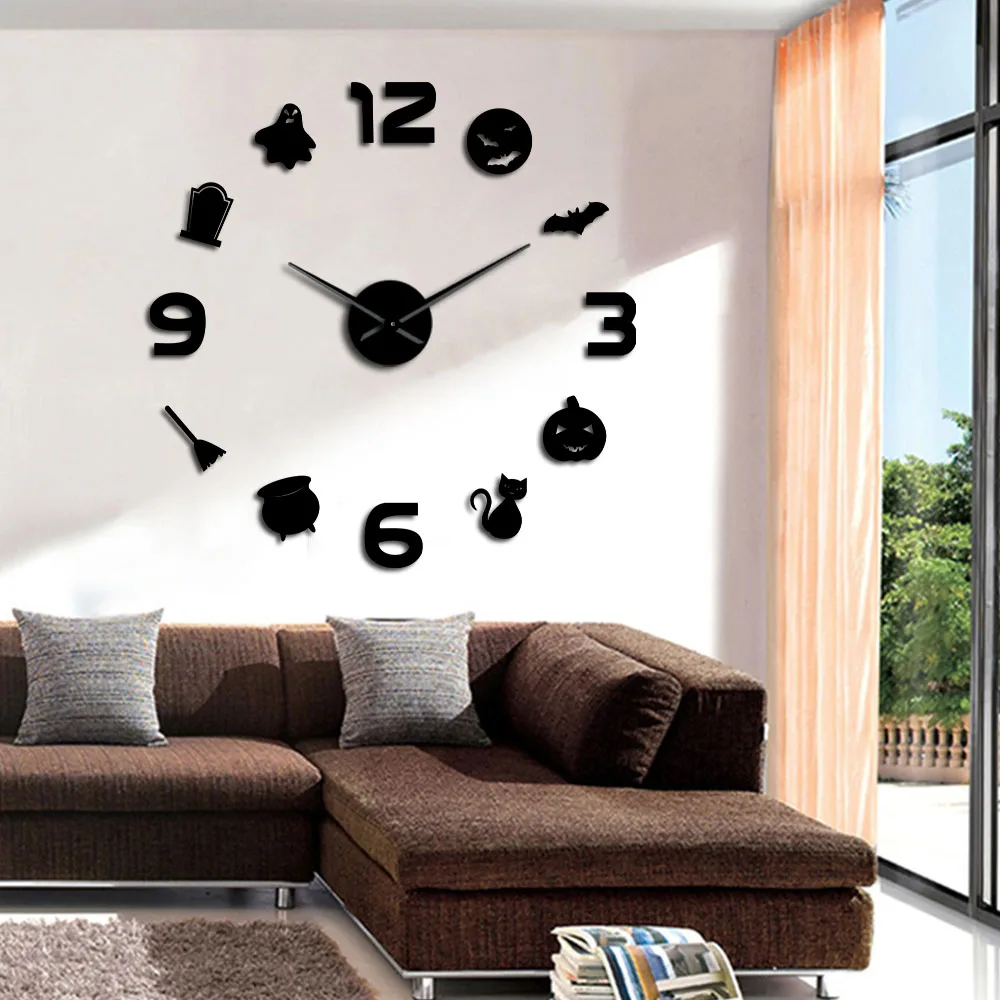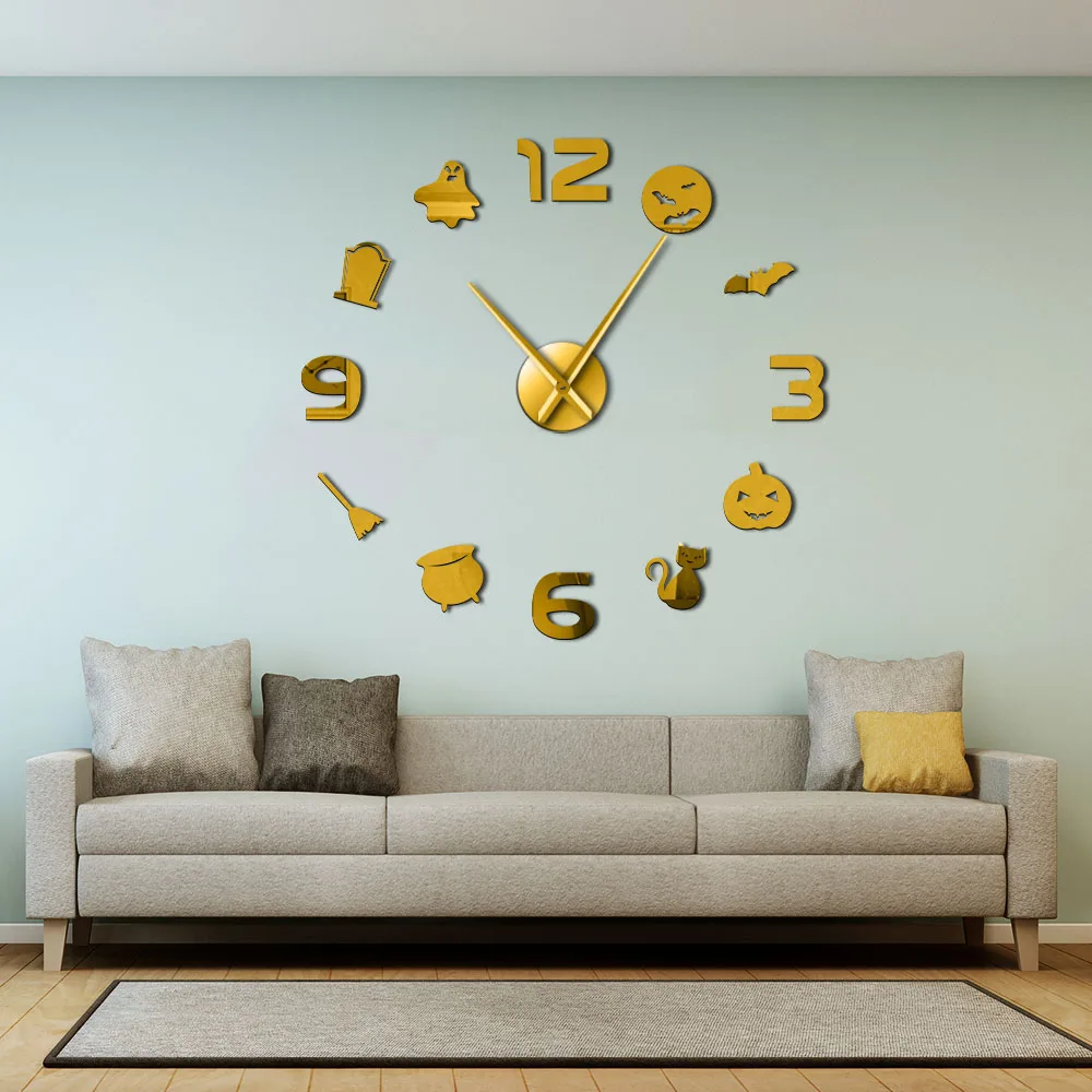 3D бесшумные настенные часы на Хэллоуин сделай сам, большие настенные часы, Безрамные настенные часы с большими стрелками, зеркальными цифрами