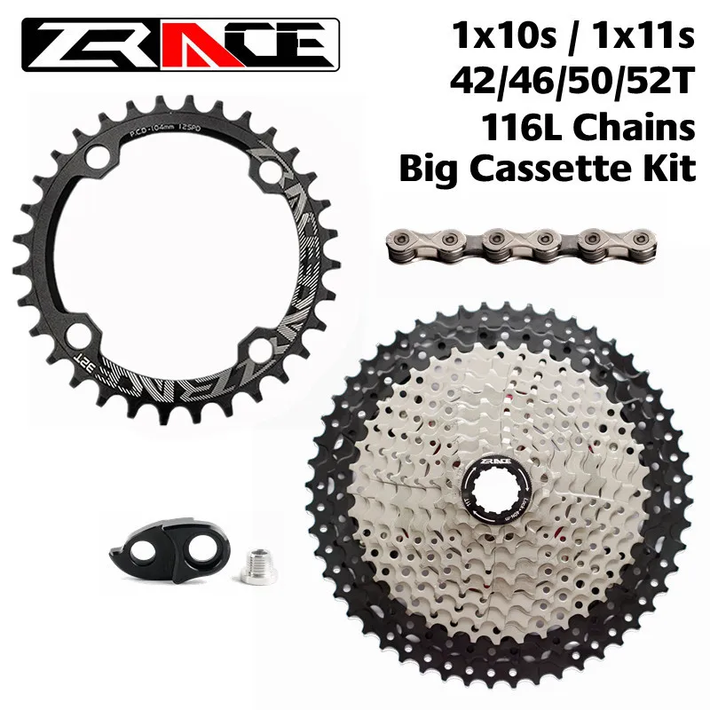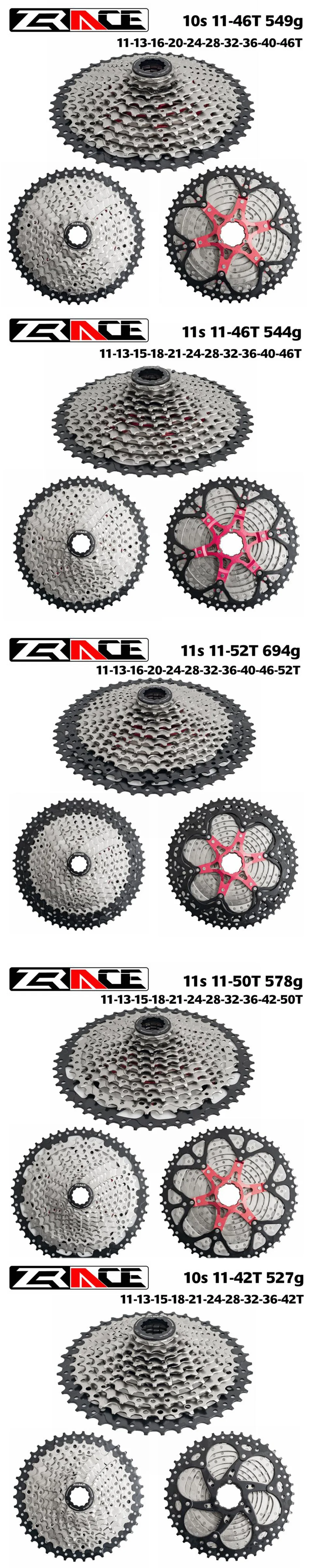 Цепи велосипедные ZRACE 104BCD 32T 34T 36T + 10S 11 S, свободное колесо 50T 52T + YBN цепи, большие кассеты 11 скоростей для Sram