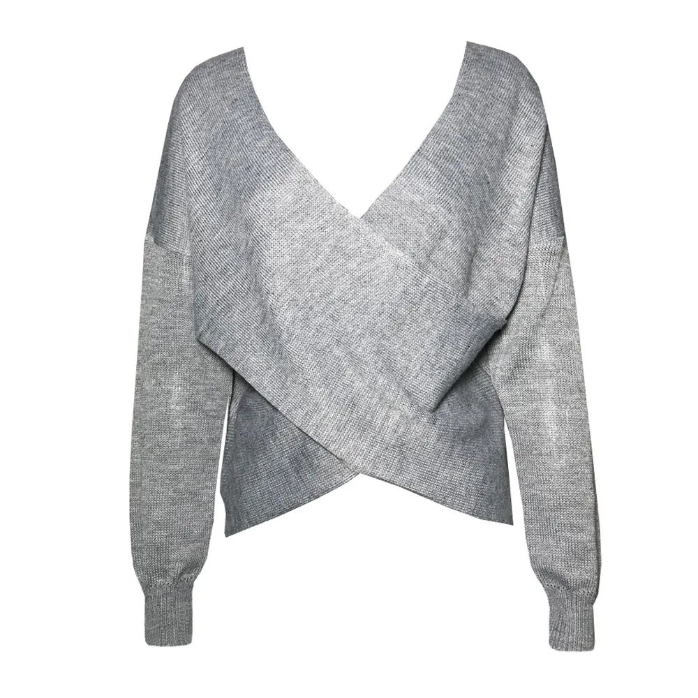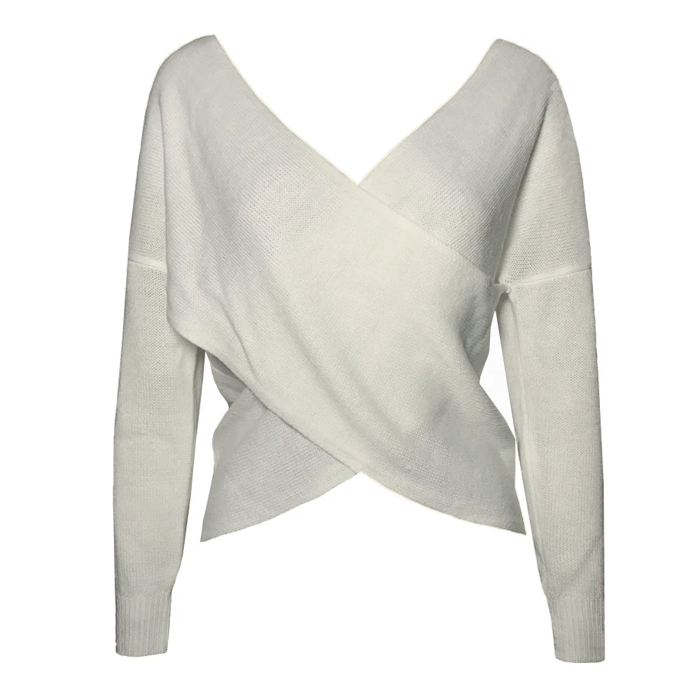 Женский трикотажный пуловер ArtSu, однотонный Свободный пуловер с рукавами летучая мышь, V-образным вырезом, на осень, 2019