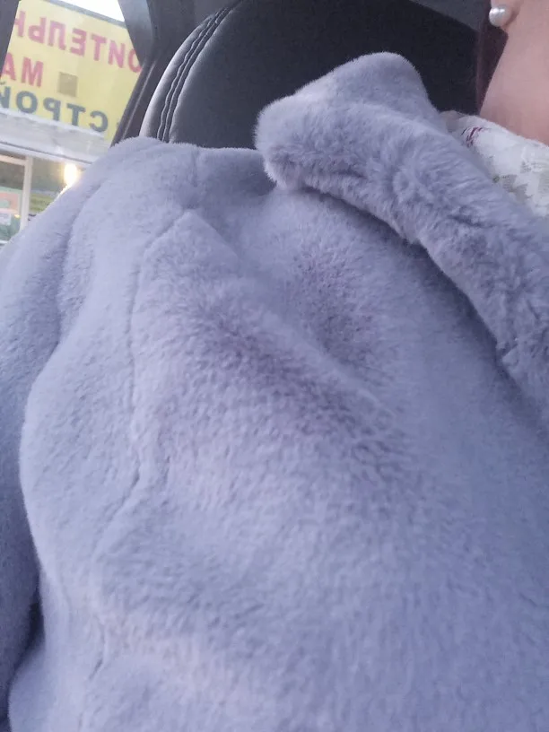 Шубка без сомнения хороша. Очень мягкая, красивый серый цвет, фото продавца отражает реальный цвет шубки. Но на мои телеса 98-82-102 она большая. В талии где-то см на 20. В груди почти хорошо, но тоже большевата. Из за этого шубка меня полнит. Думаю мне подошёл бы 2XL. Думаю, что буду ушивать.